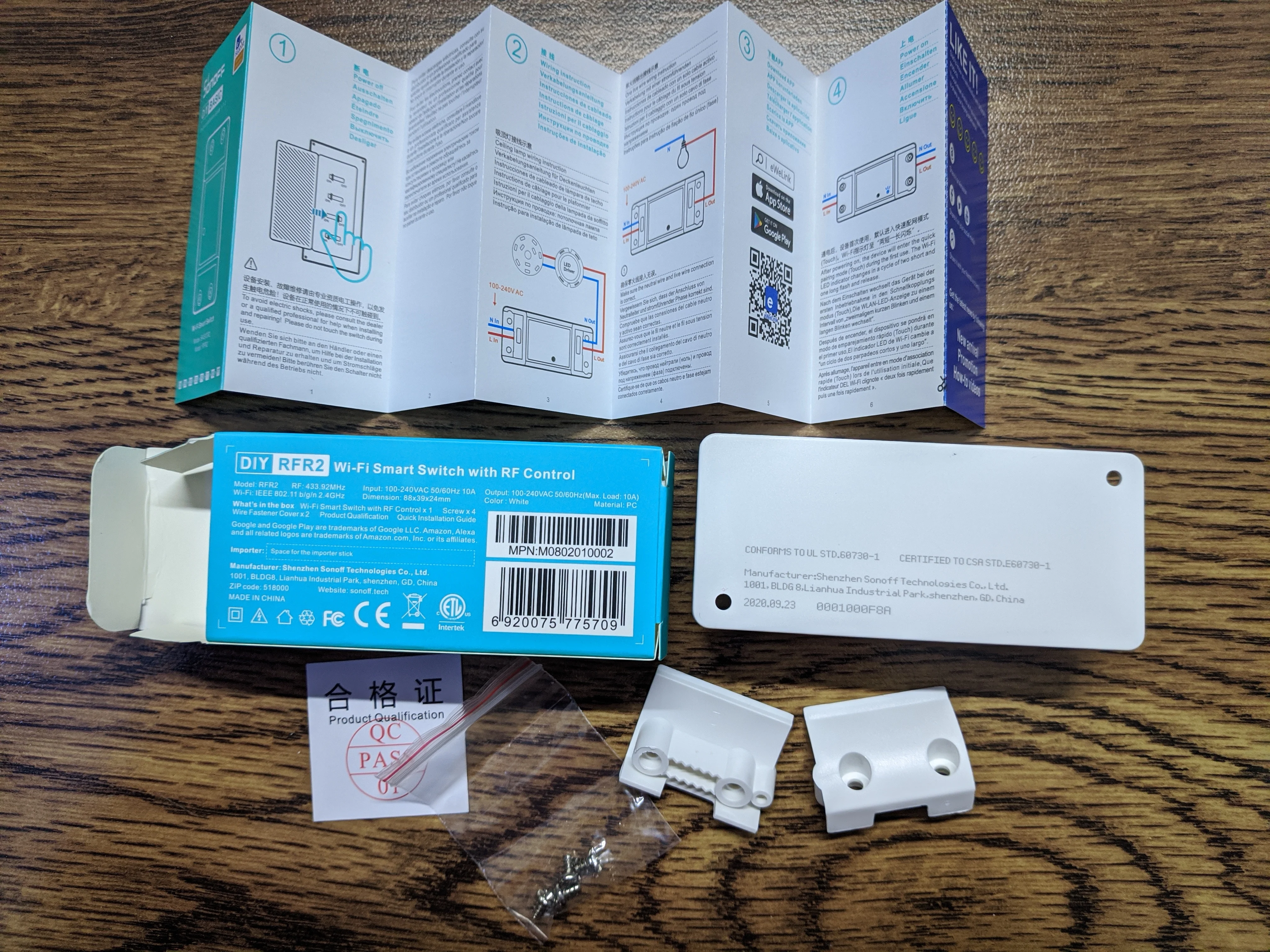 хороший переключатель. привязался к умному дому без проблем. пульт на 433 МГц подошёл к нему тоже без проблем. упаковано в фирменную коробку с инструкцией и крепёжными болтиками. При первом включении нашел новую прошивку и успешно обновился. Работает с Алисой через связку Михоум + Евелинк