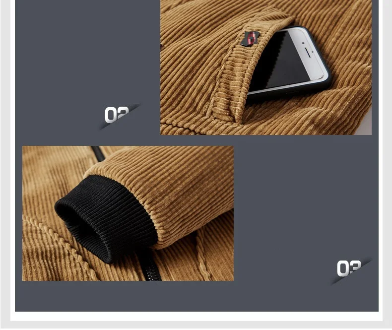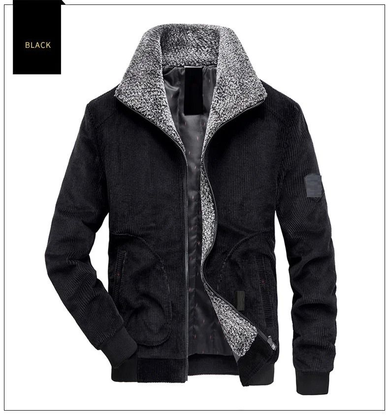 Куртка мужская Вельветовая зимняя, теплая хлопковая парка, Повседневная Свободная, со множеством карманов, с отложным воротником