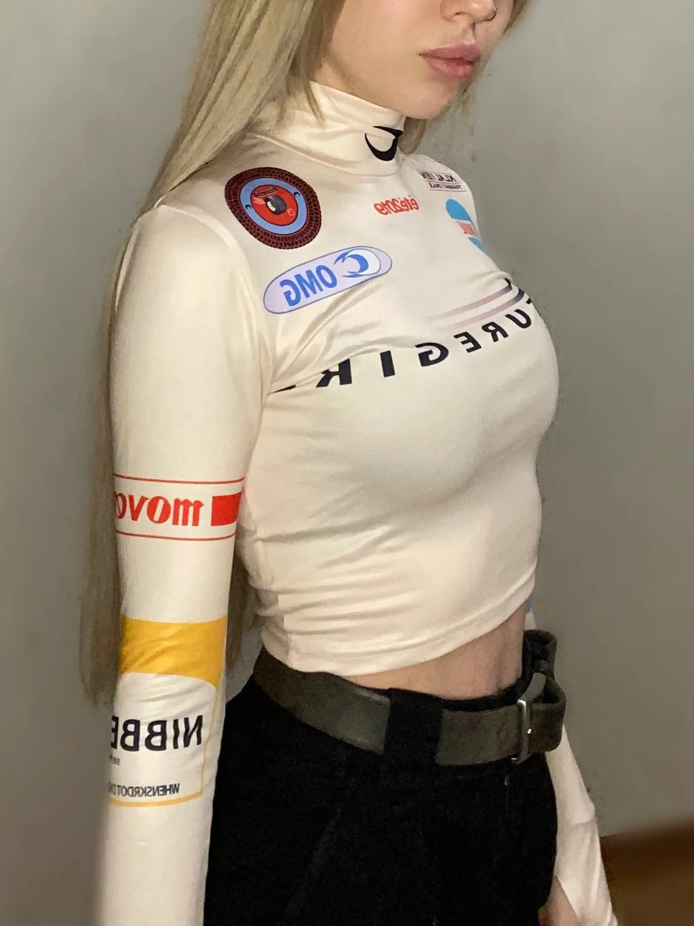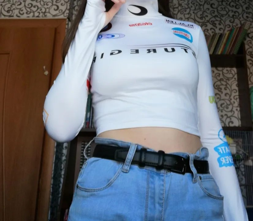 Женский укороченный Топ с длинным рукавом, эластичный, с принтом