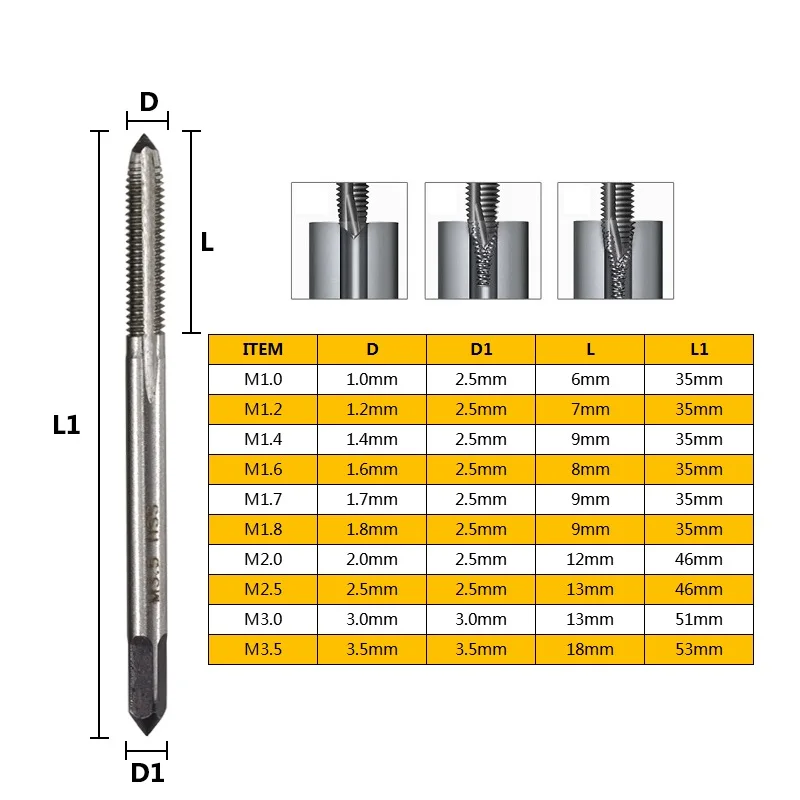 Мини-метчики для станка M1, M1.2, M1.4, M1.6, M1.7, M1.8, M2, M2.5, M3, M3.5, 610 шт., набор прямая Флейта HSS кран с винтовой резьбой