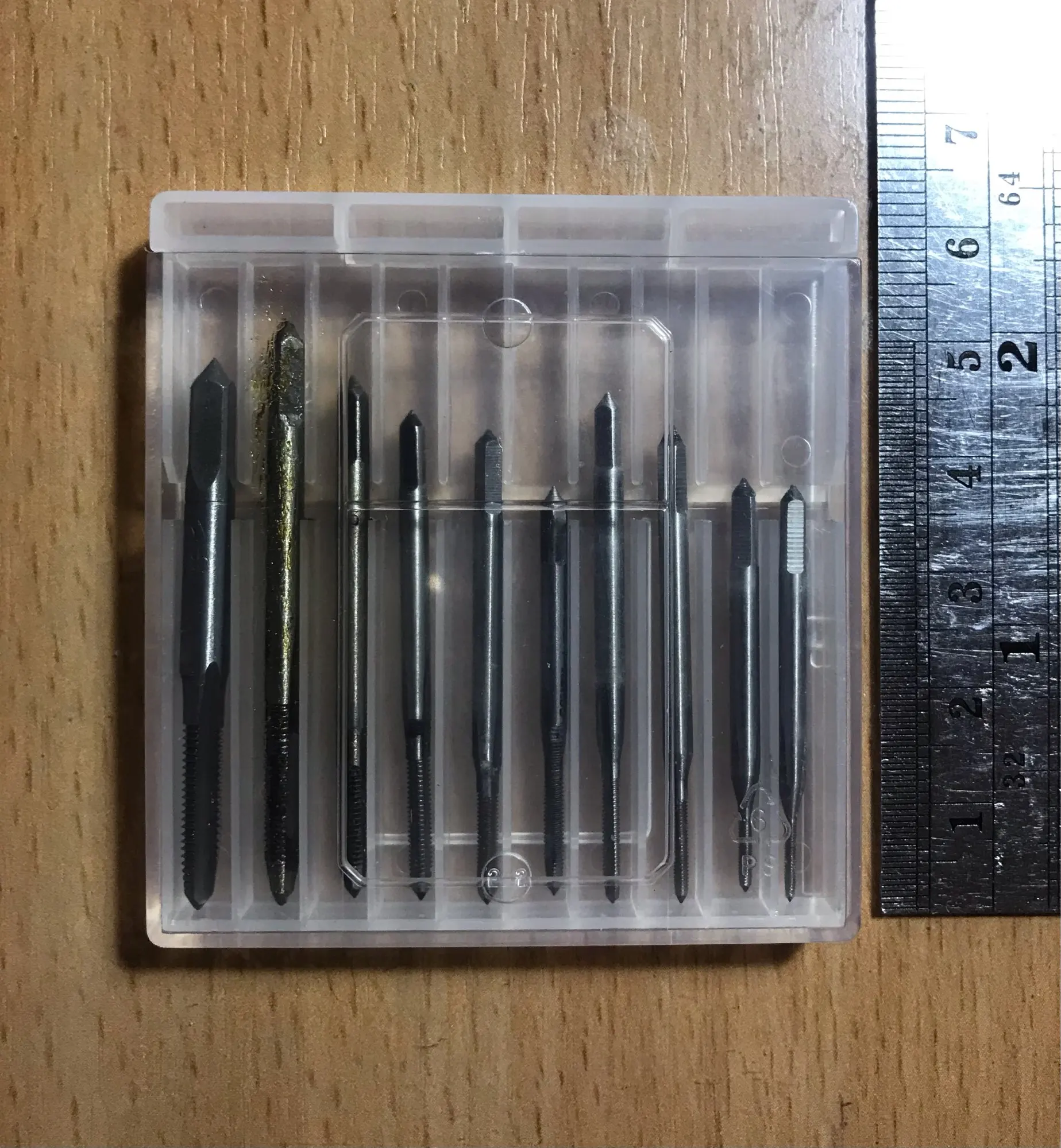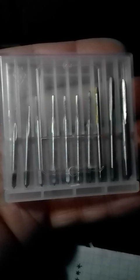 А мне вот не повезло (( Метчики пришли в белой прозрачной коробочке, а не в оранжевой. Метчики М2 и мельче по длине не такие как на рисунке. Маркировка в разных стилях, на некоторых отсутствует (например на 1.7 есть, а на 1.8 и 1.6 нету), что говорит о том, что метчики из разных наборов (разных производителей). Некоторые мелкие похоже б/у.