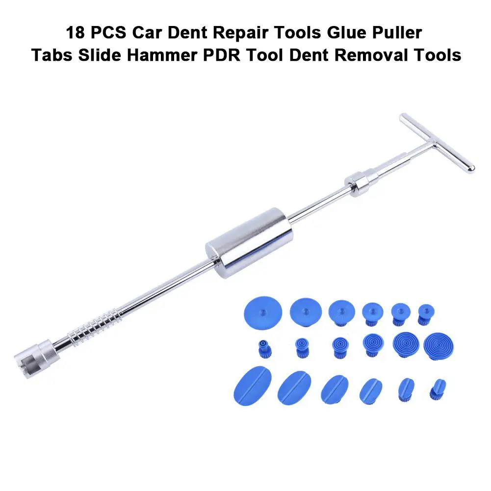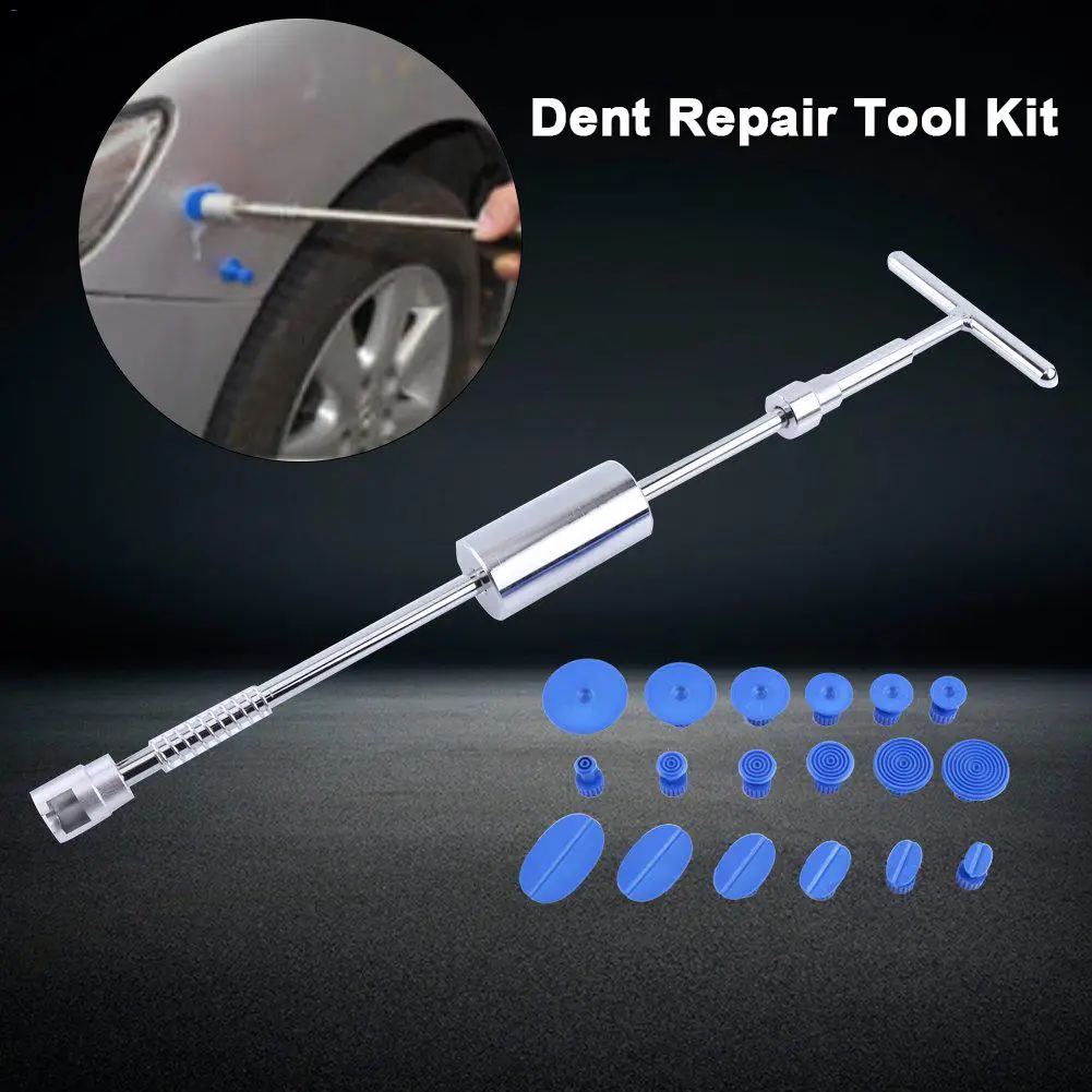 Инструмент для ремонта вмятин автомобиля, набор для удаления вмятин с Т-образным стержнем, 2 в 1, скользящий молоток, обратный молоток, клеевые вкладки, присоска