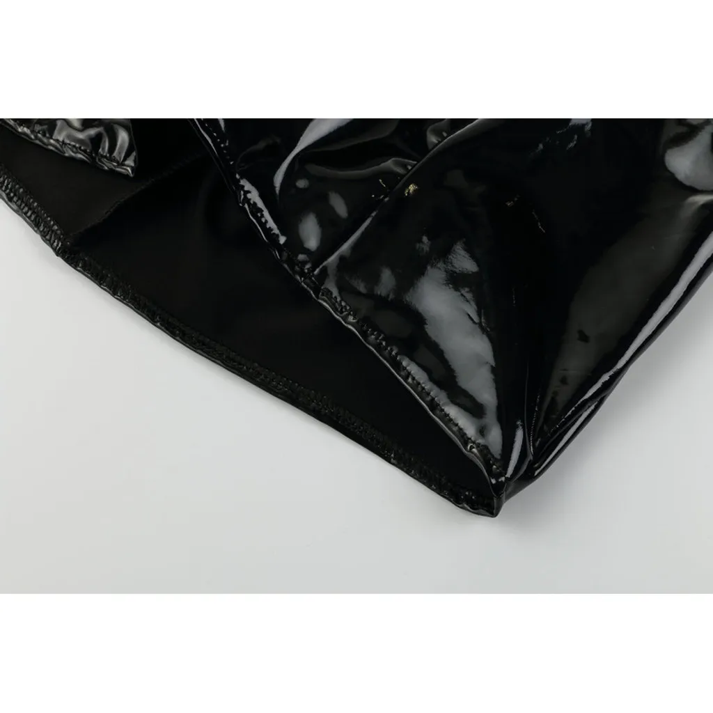 38 # для женщин, сексуальные, экокожа (полиуретан), кожаная вечерние платье блеск обернутое вокруг груди хип платье на бретельках с плиссированной талией Bodycon платье размера плюс черный Детское Белье для сна