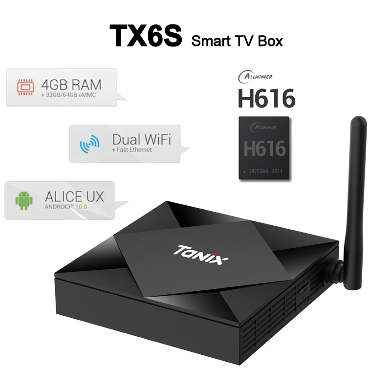 ТВ-приставка Tanix TX6S, Android 10,0, Allwinner H616, 4 + 642,4 ГГц, Wi-Fi, Bluetooth