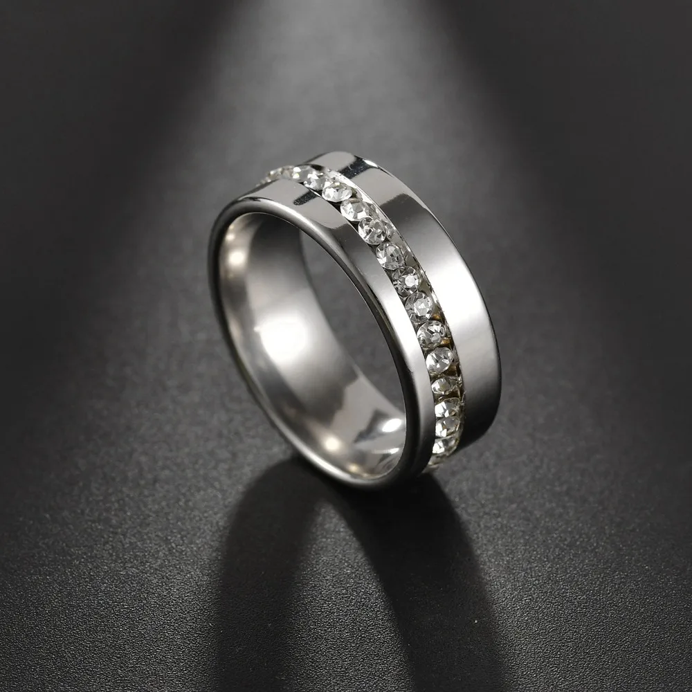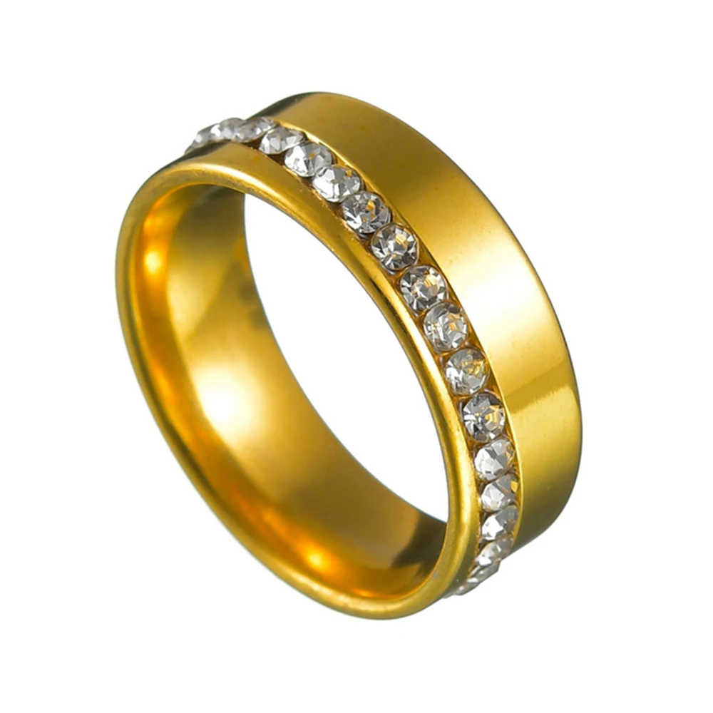 Обручальное кольцо со стразами, 8 мм, из титановой стали