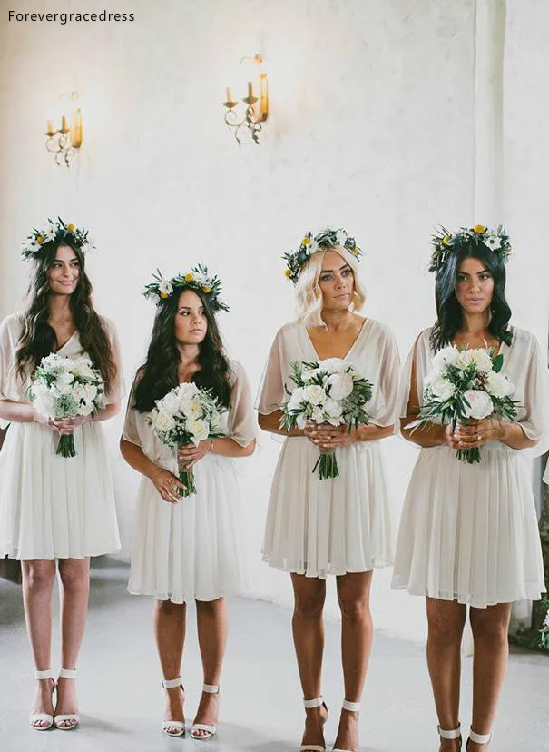 Дешевое летнее пляжное платье подружки невесты, короткое шифоновое платье в стиле бохо для свадебной вечеринки, платье подружки невесты размера плюс, на заказ