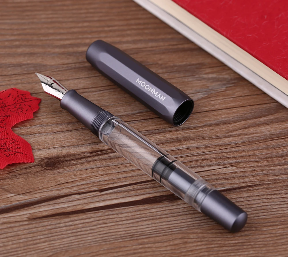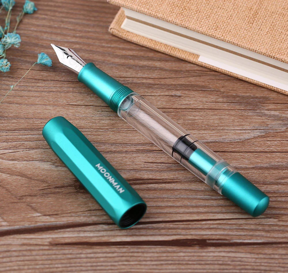 Ручка перьевая Moonman MAJOHN T1 с акриловым и металлическим поршнем, ручка из алюминиевого сплава EFFM большой емкости, подарок для бизнеса и офиса