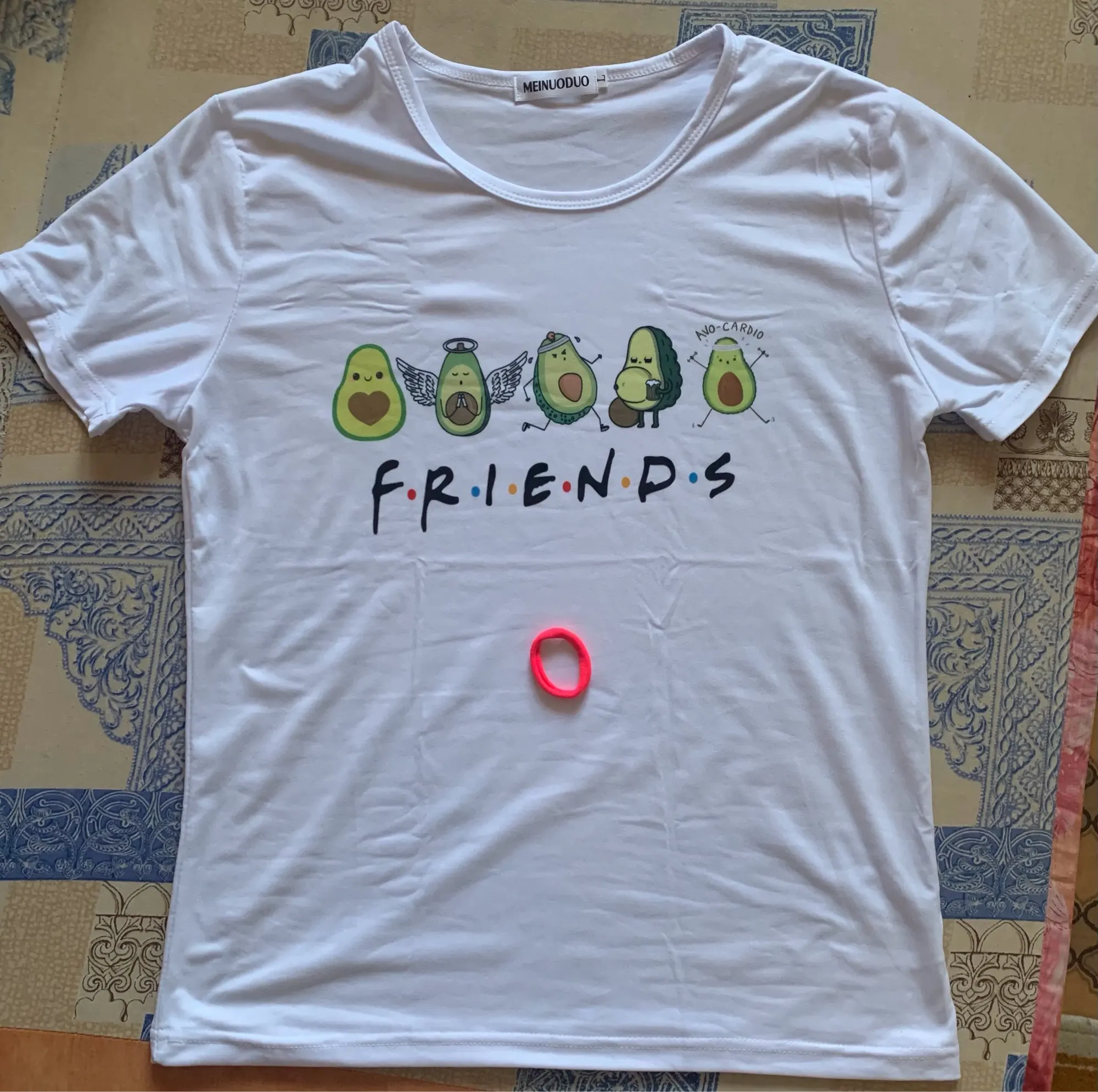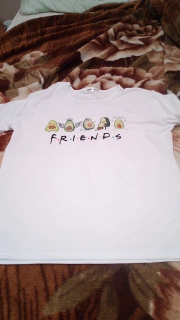 Красивые футболки из мягкой ткани. Изображение авокадо немного шире, чем я ожидала, но все равно нормально. Другая модель с изображением девочки более точная и выглядит как на фото.