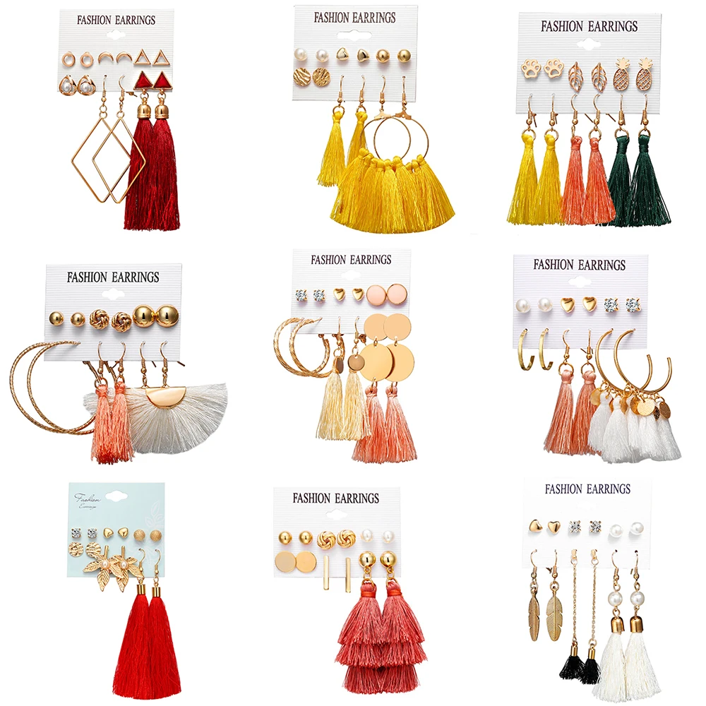 Акриловые серьги с кисточками для женщин, набор богемных сережек, большие геометрические серьги-капельки, женские серьги DIY, модные ювелирные изделия, 2020