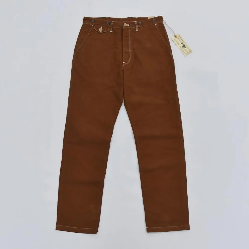 Повседневные мужские брюки из Твила в винтажном стиле BOB DONG с пуговицы для подтяжек