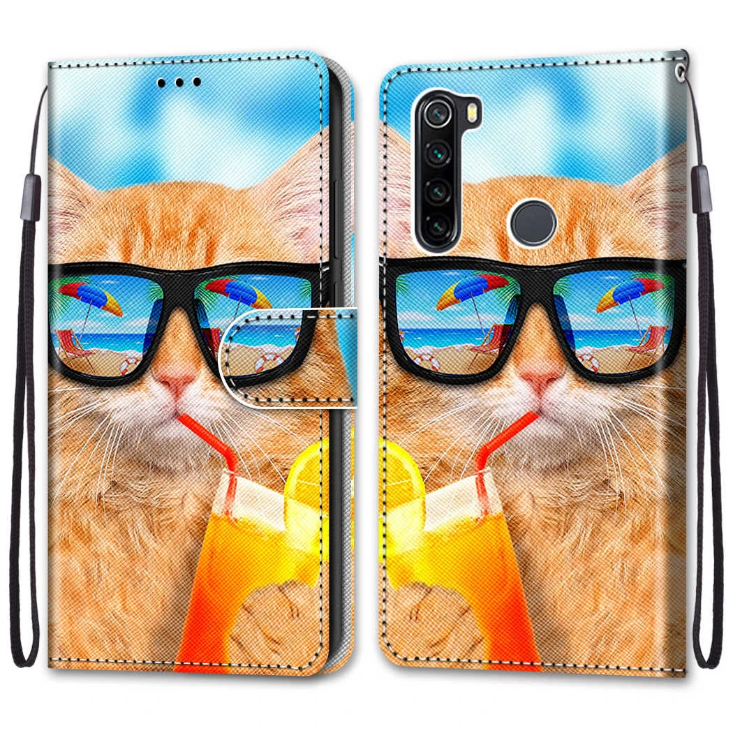 Кожаный чехол-книжка для Xiaomi Redmi Note 8 Pro, чехол-бумажник с подставкой и держателем для карт, чехол-книжка с рисунком кота и собаки