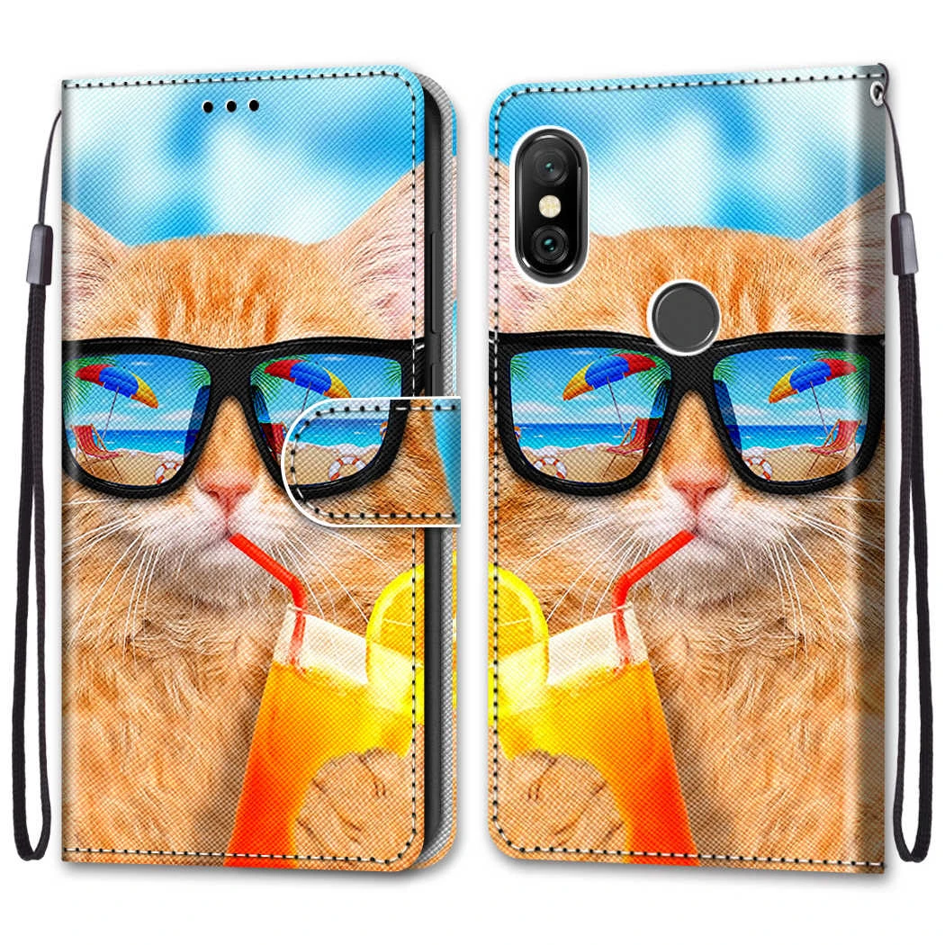 Кожаный флип-чехол для Xiaomi Redmi Note 7 Pro, Чехлы, 3D кошелек, держатель для карт, подставка, чехол-книжка, кошка, собака, чехол с рисунком Note7 7Pro