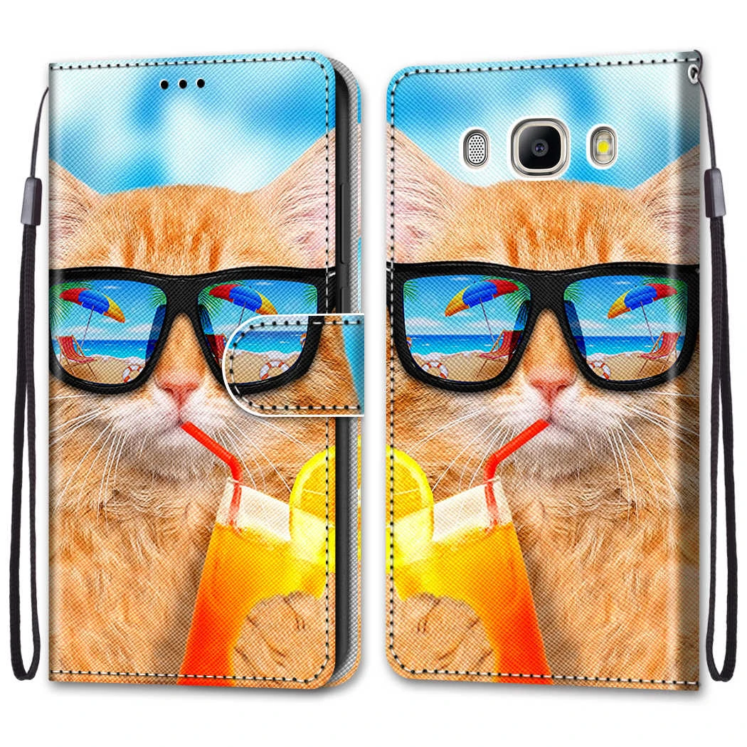 Брендированный флип-чехол из кожи для смартфона Samsung Galaxy J7 2016 J710 Fundas 3D чехол-кошелек с отделениями для карт и держателем обложка книги лев тигр окрашенные Coque J710F