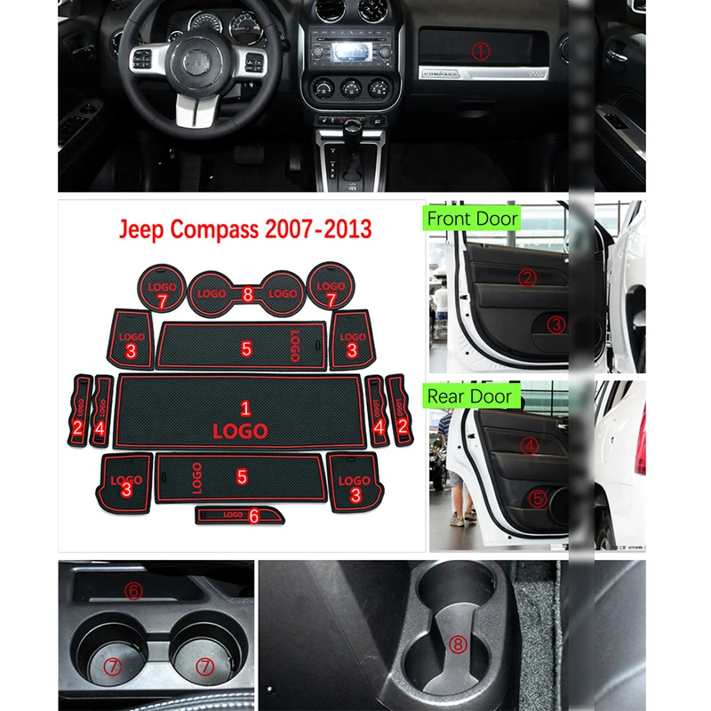 Anti-slip Door Cup Cushion Groove Mats for Jeep Compass 2007~2013
