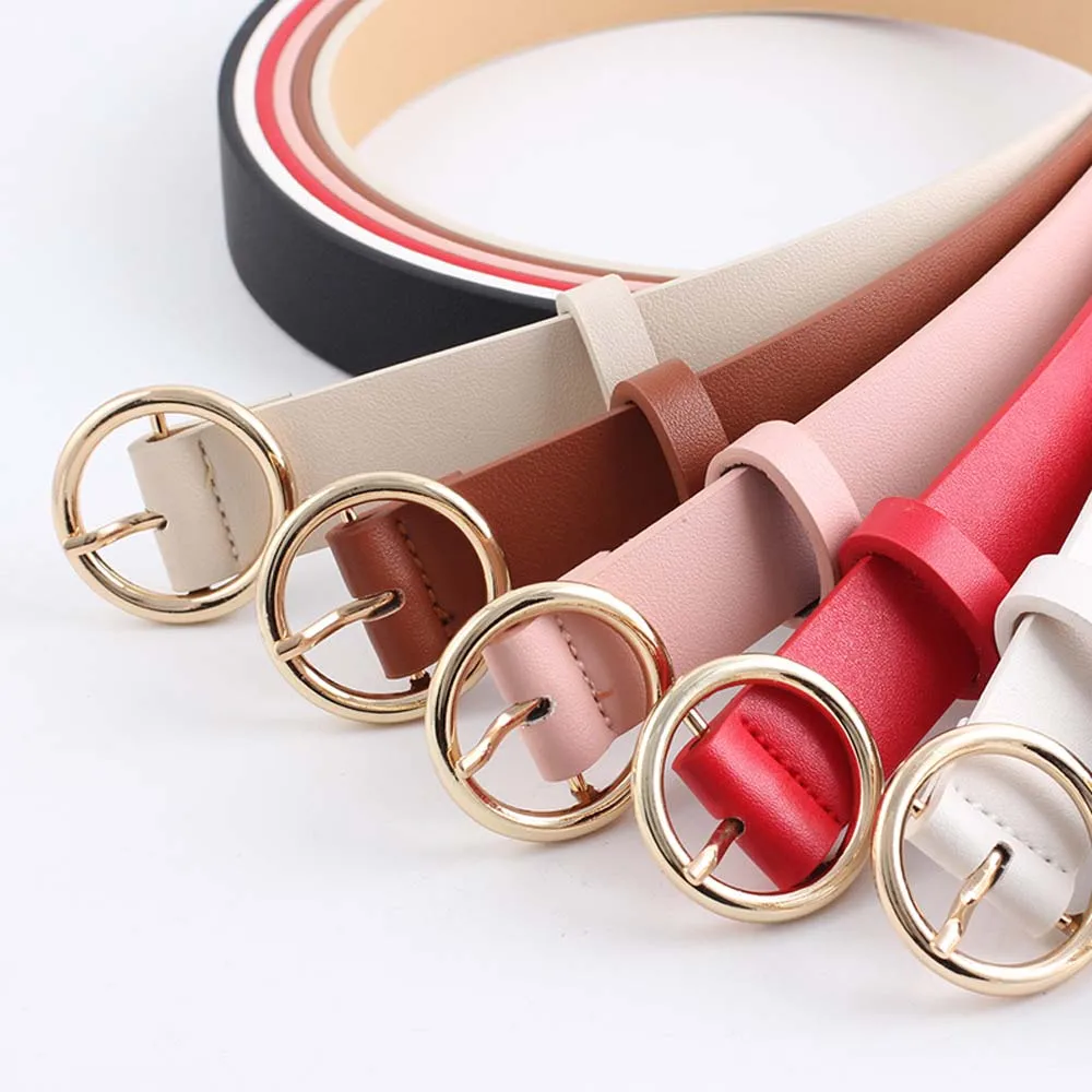 Ремень с боковой пряжкой Женский, тонкий пояс золотистого цвета для джинсов, в простом стиле, с круглой пряжкой, для студентов