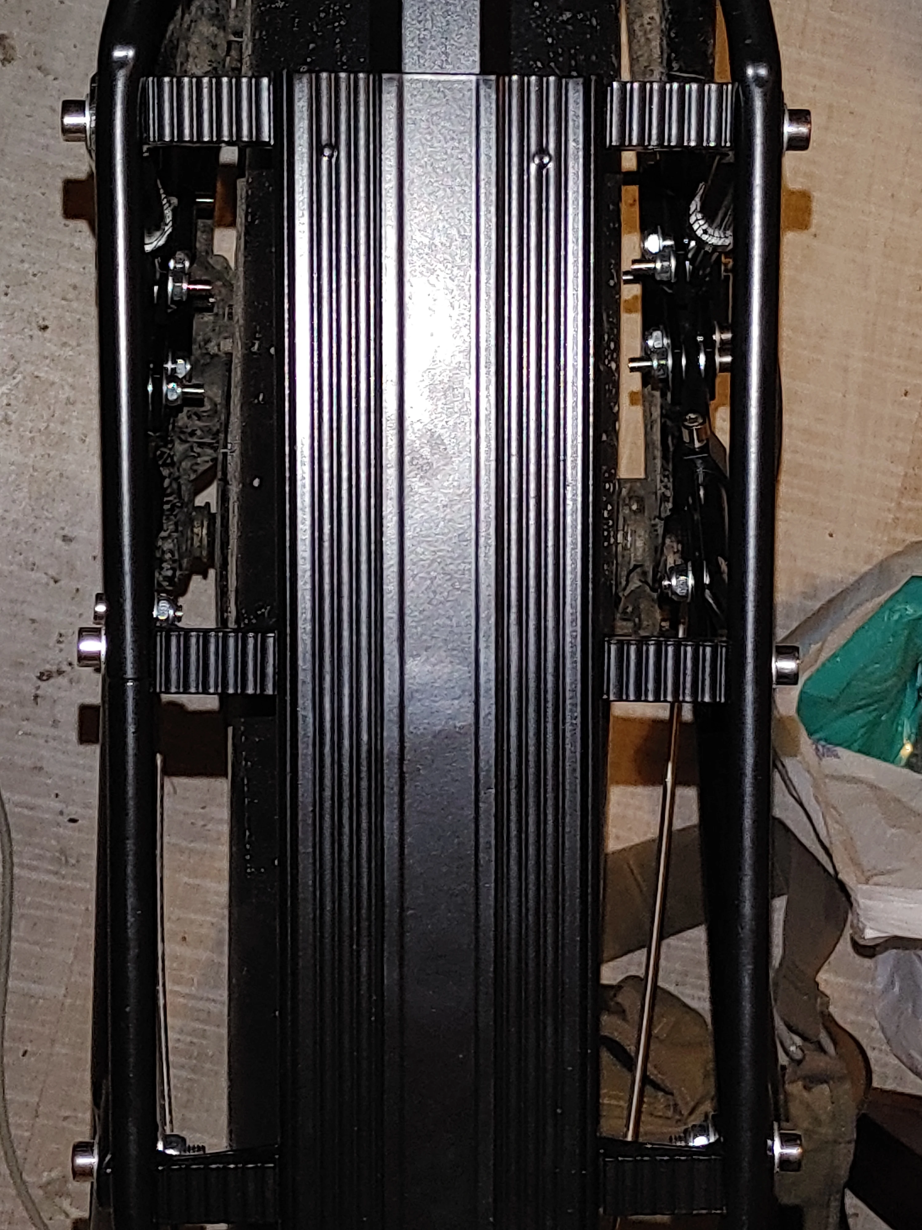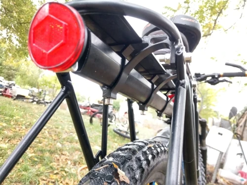Штука крепкая, не то что аналогичные и не усиленные. До этого было два обычных, разваливались по сварочным швам и гнулась труба после пробега 1к. Вожу 6 кг аккум на нем. Пробежал порядка 600 км, пока целый. Выдержал падение в результате столкновения с автобусом. Дальше посмотрим.