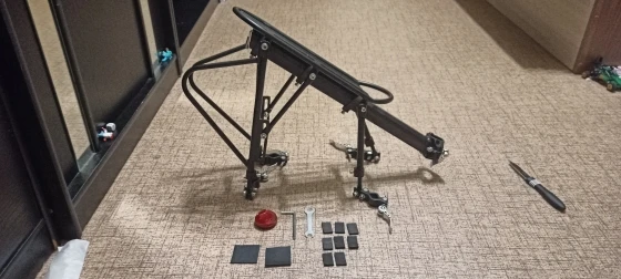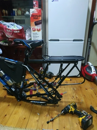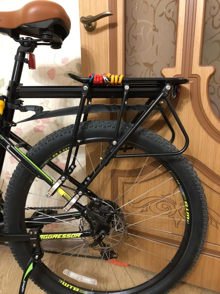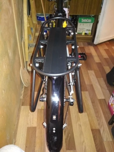Качество обработки деталей на 4-ку: есть косяки по покраске, небольшой брак в виде вмятин, заусенец. Багажник лёгкий. Только собрав понял, что это быстросьем. В работе не пробовал, жду новый велик.