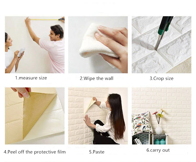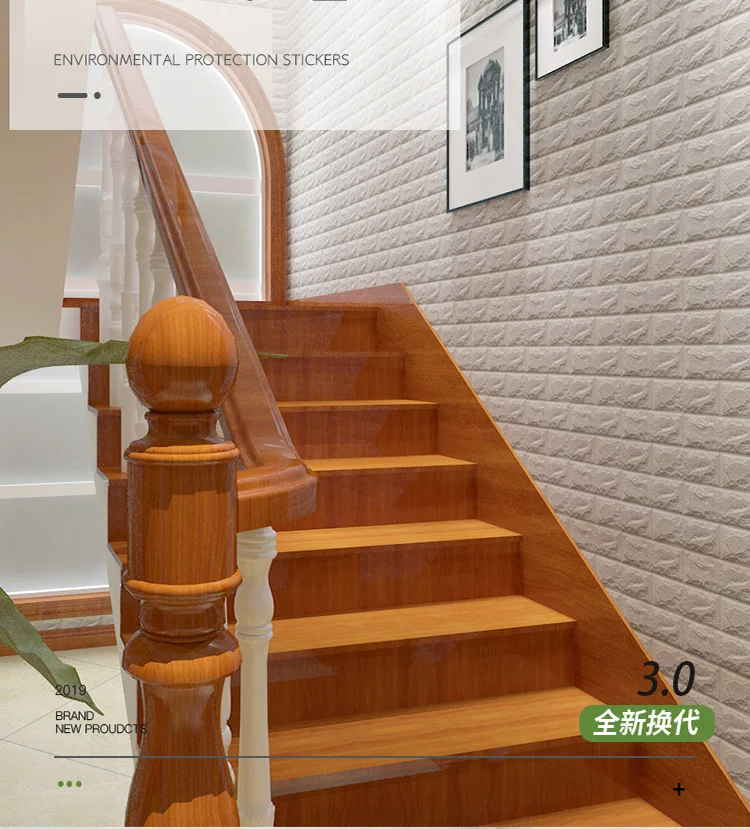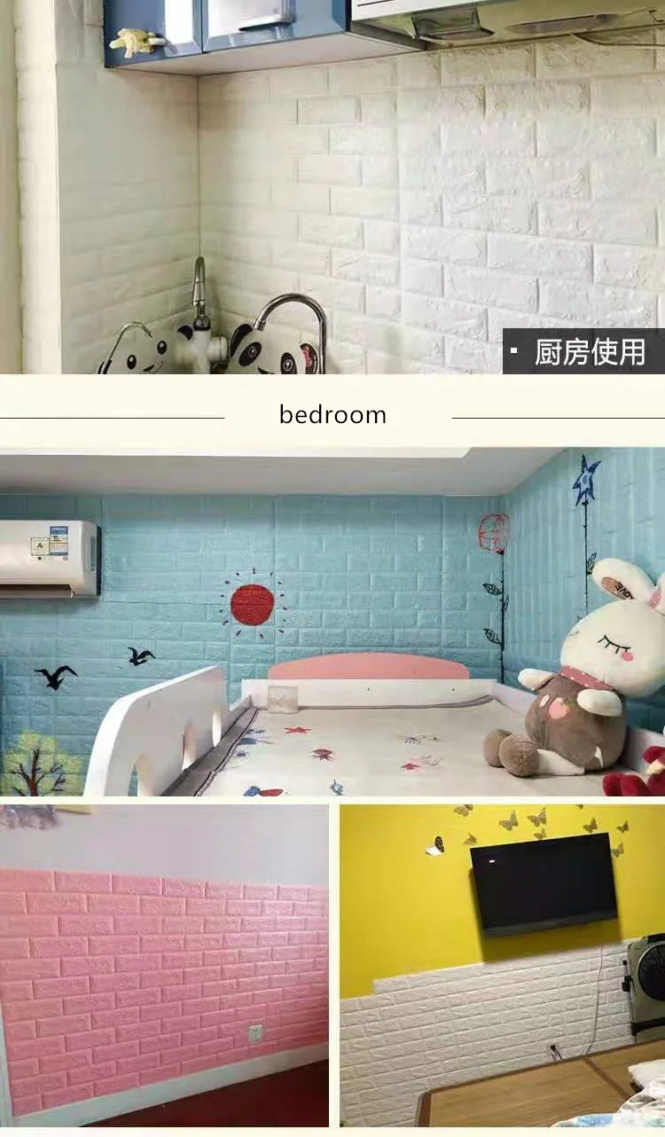 1: трехмерная декоративная мягкая пена, предотвращение столкновений для детей, забота о вашей семье в безопасности.2: Безопасность и защита окружающей среды, не токсичен без запаха, подходит для семейного безопасного домашнего пространства.3: Реалистичный, эффект естественного узора кирпича, простой и современный стиль.4: Бесплатный самоклеящийся дизайн, установка, случайный коллаж, произвольный разрез.5: сравнение обоев улучшает эффект шумоподавления.