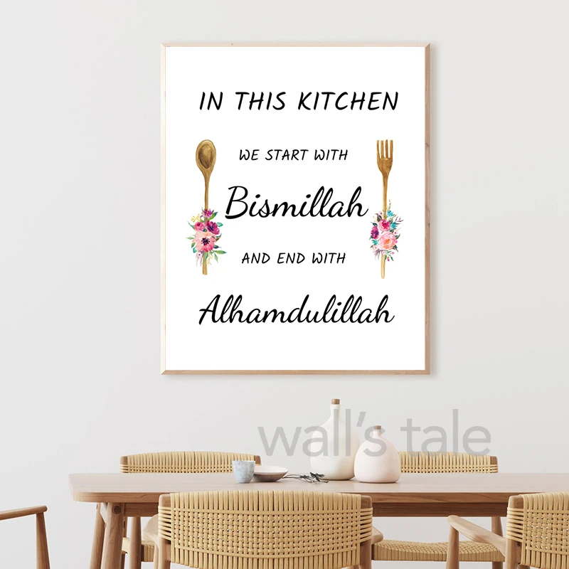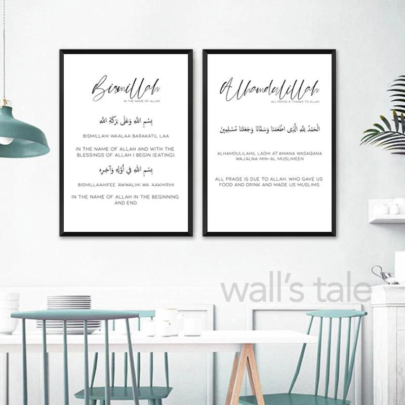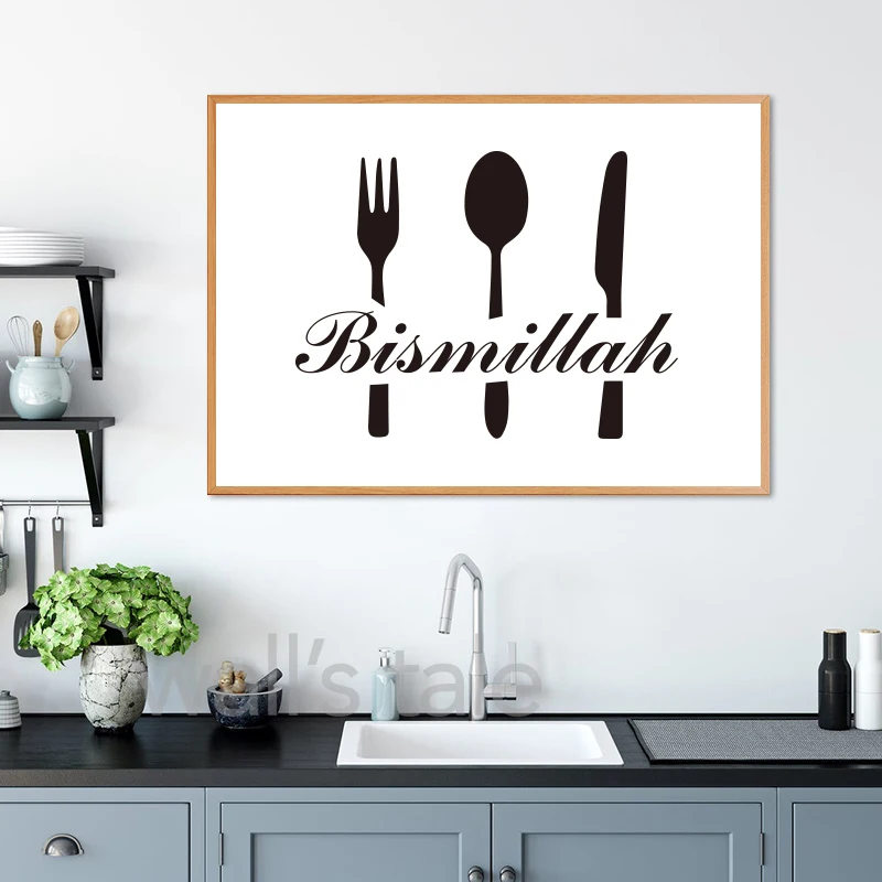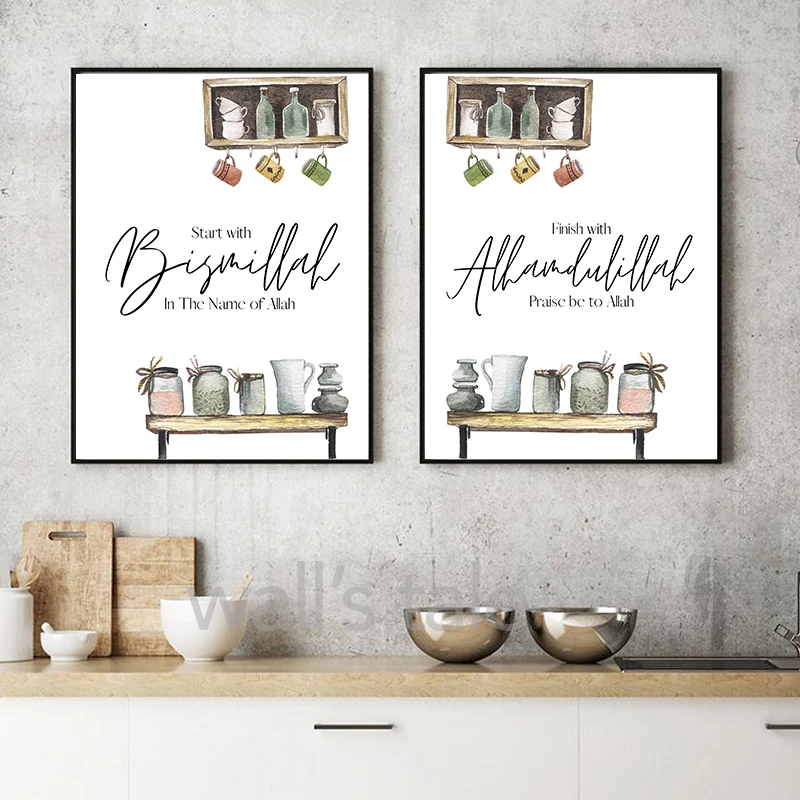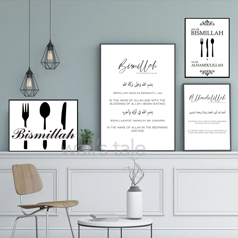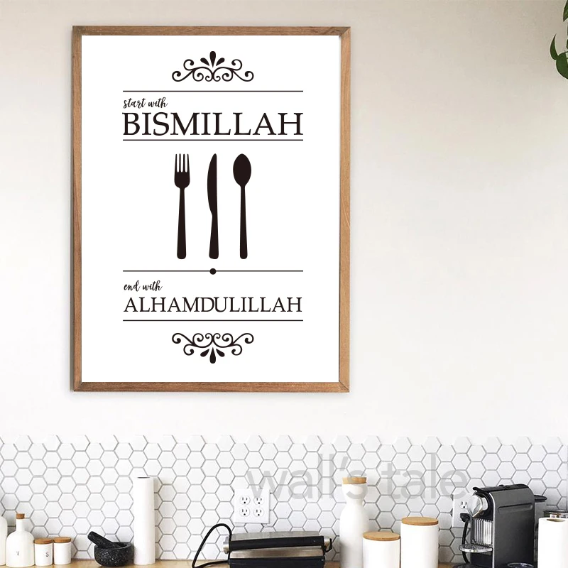 Исламские постеры и принты Bismillah Inshallah Elhamdulillah, арабское настенное искусство, холст, живопись, картины, кухня, Настенный декор