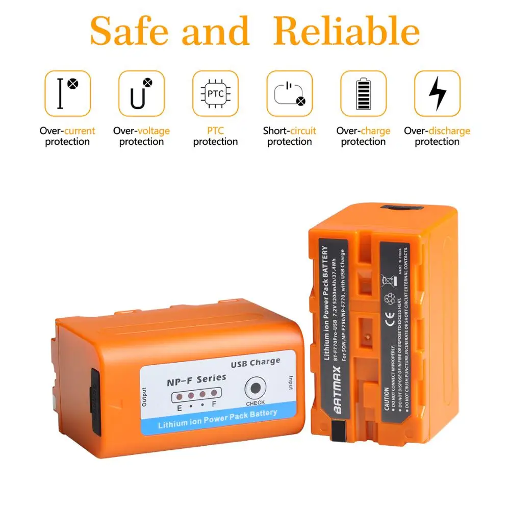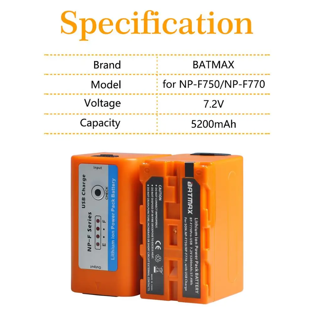 Аккумулятор Batmax на 5200 мА ч NP-F770 NP-F750 с выходом USB для зарядкивходом для Sony NP F970 F960 F550 F570 QM91D CCD-RV100 TRU47E