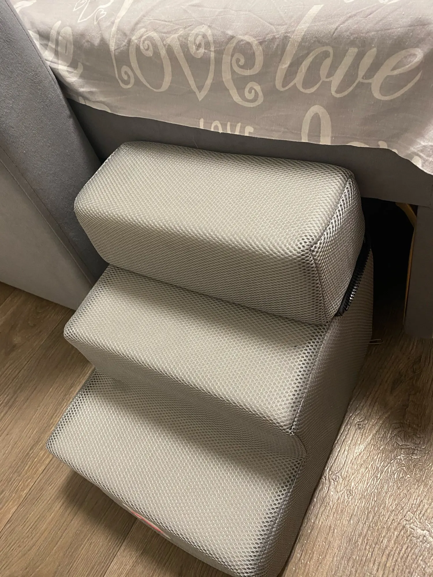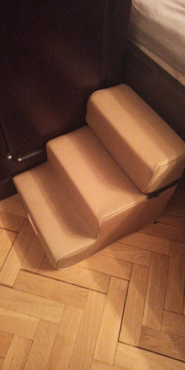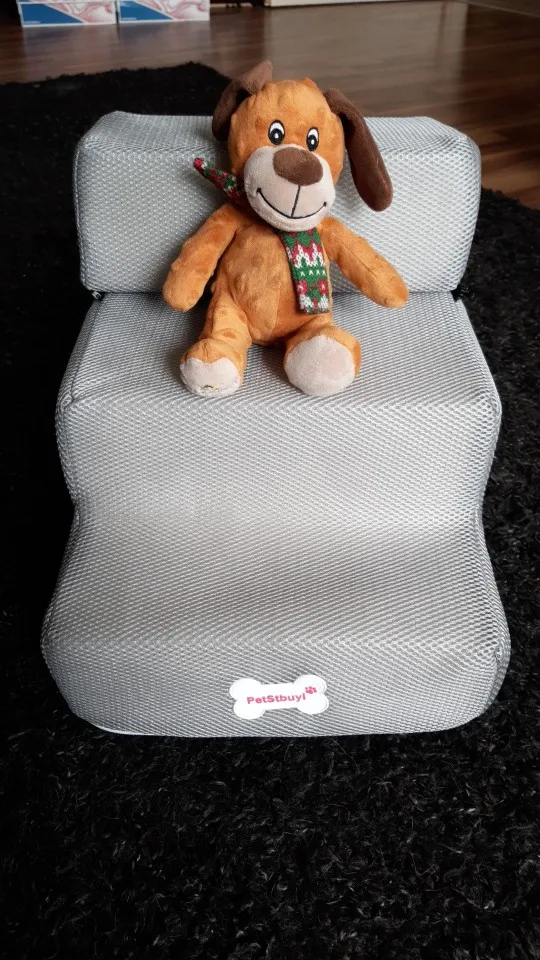 если честно то ступеньки маленькие, даже для чихуа. когда спускается то последняя ступенька очень узкая, сделать бы по шире хотя бы еще на 5 см , тогда было бы лучше . 1177р для этого дороговато , проще купить поролон ,вырезать его и обтянуть тканью . дешевле выйдет .