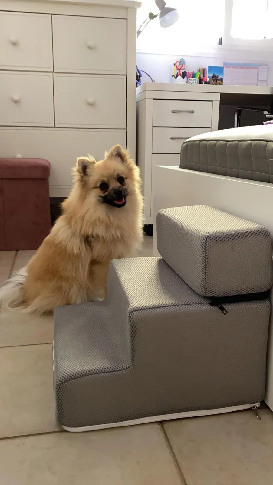 Лестница идеально подходит для моего 2-килограммового чихуахуа, который весь день прыгает от стула до земли, и поэтому он не повреждается, потому что Он опускается на лестницу