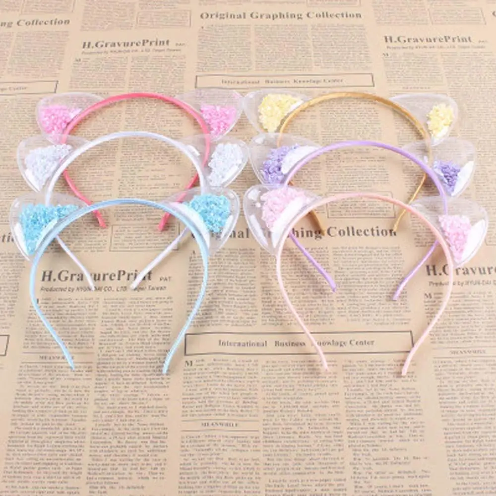 Детская повязка для волос с кошачьими ушками, с блестками, простой ...