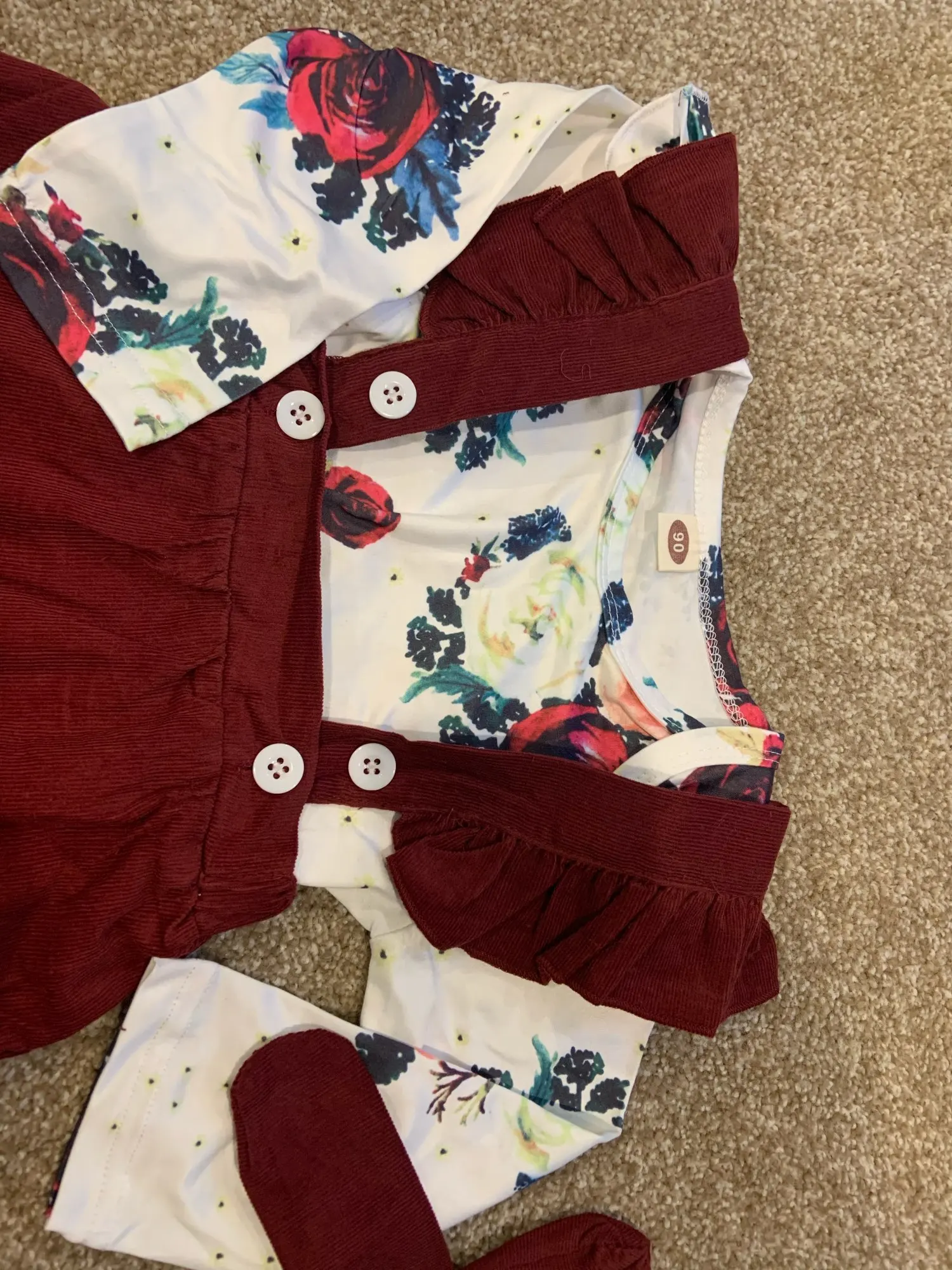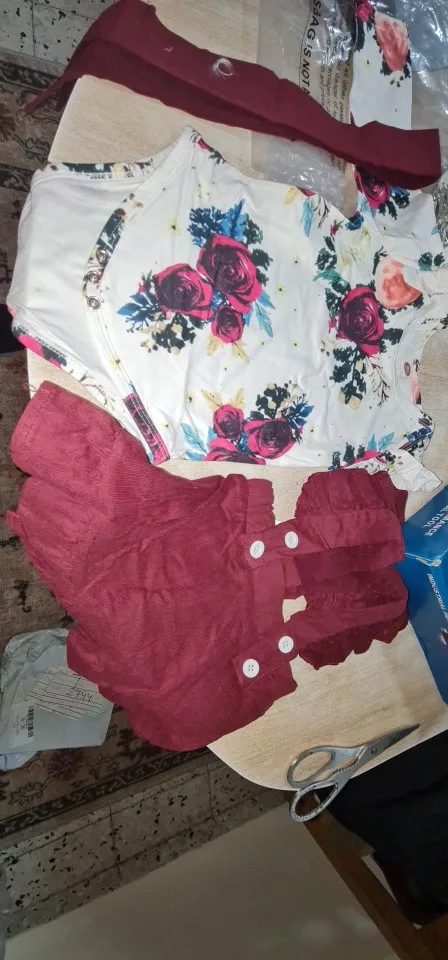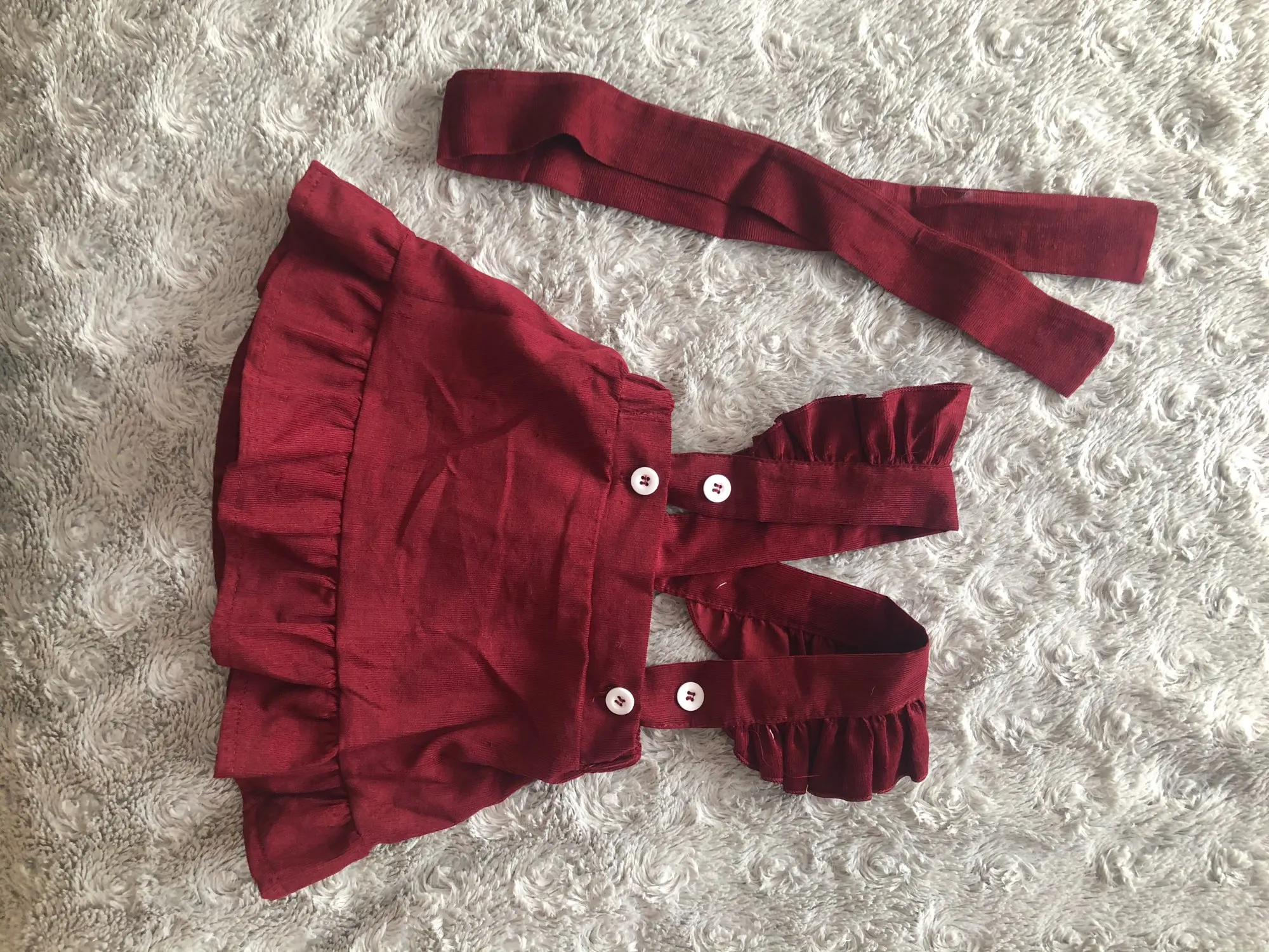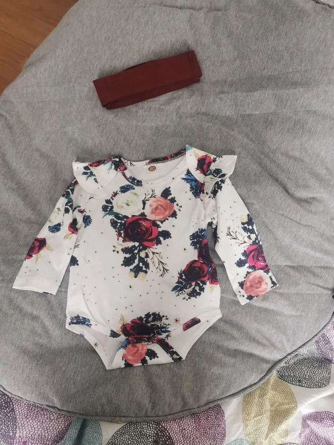 Материал боди на ощупь приятный, мягкий, но синтетика, просто на фотосессию одеть, долго в таком малыша держать нельзя. Сарафан из тонкого вельвета. немного из него торчали нитки.