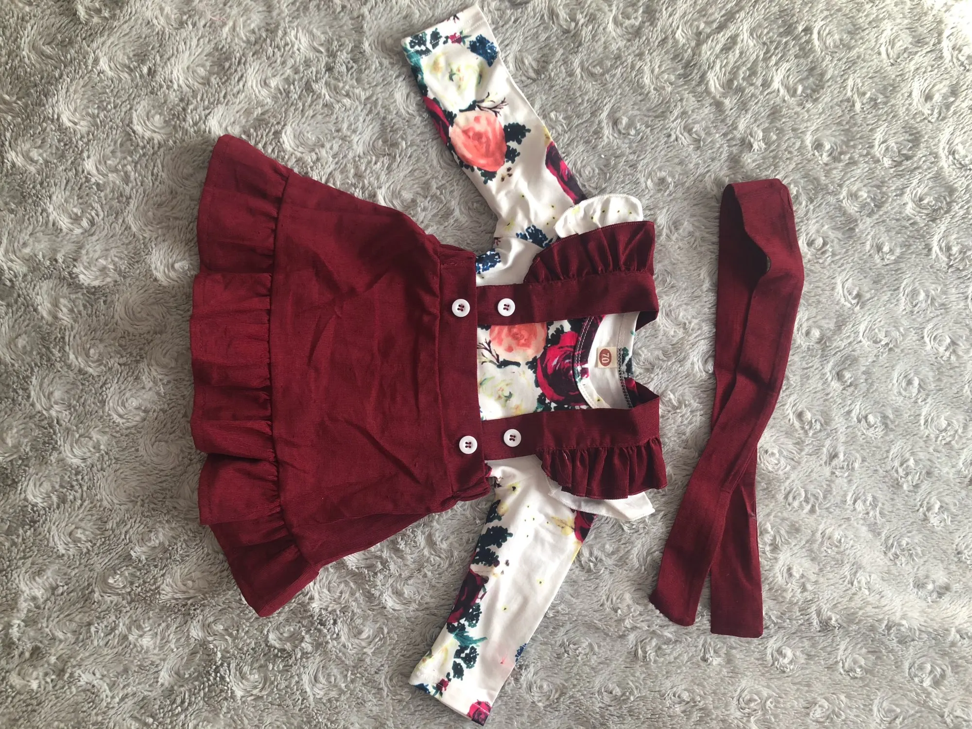 Комбинезон с повязкой на голову, с длинным рукавом, на подтяжках, с бантом, для новорожденных девочек, осень-весна, 3 шт.