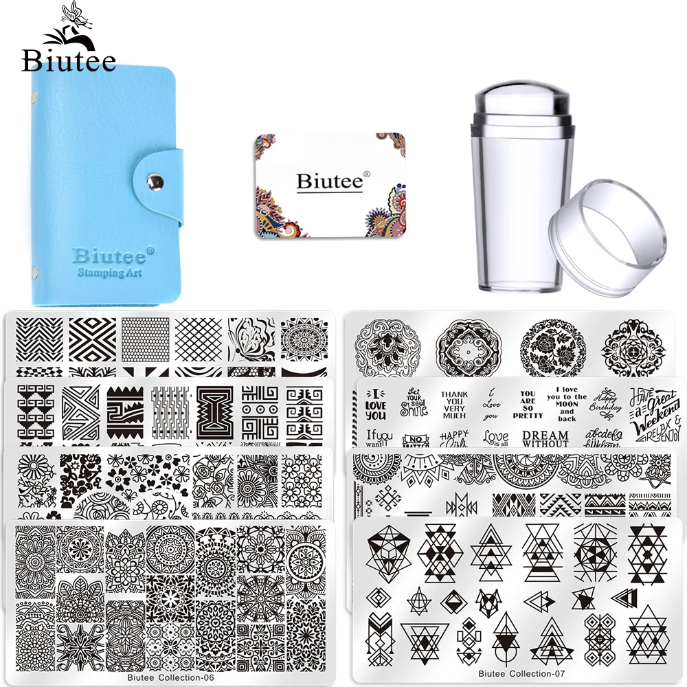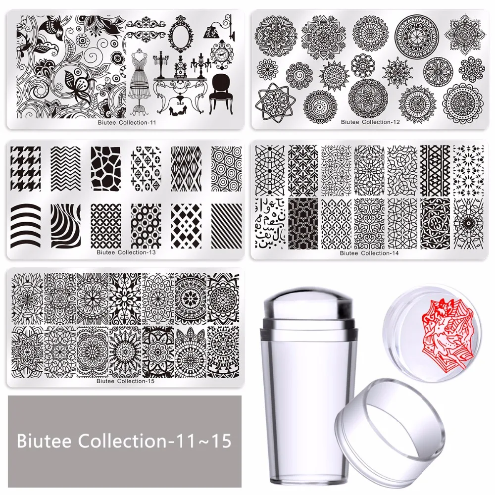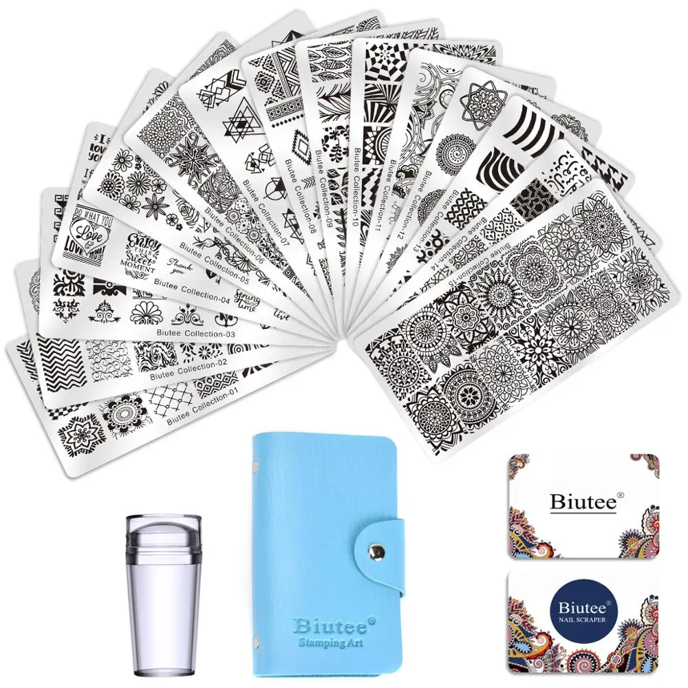 Набор для стемпинга ногтей Biutee2020, пластина скребок для стемпинга, цветок, 15 пластин, 1 штамп, 2 скребка, 1 сумка для хранения