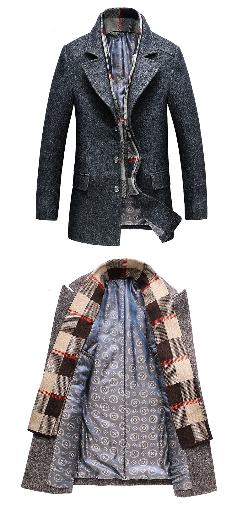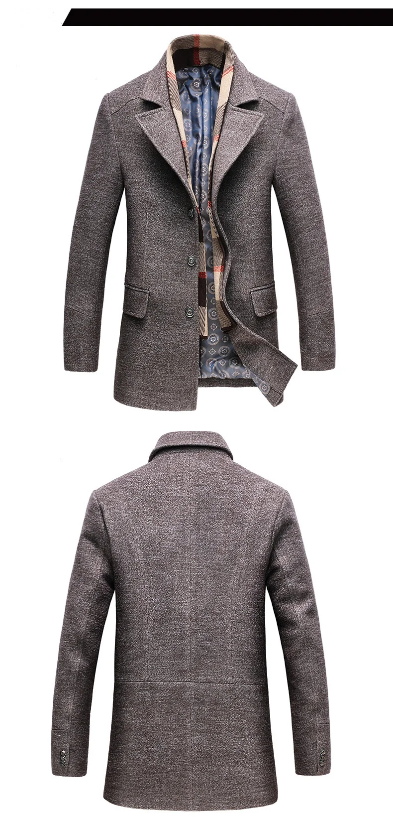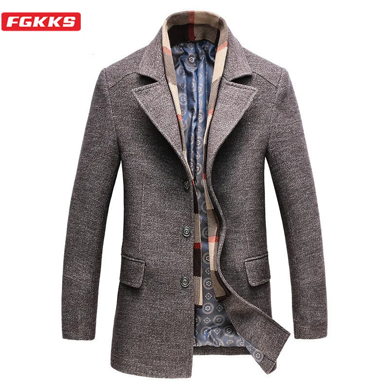 Мужское шерстяное пальто FGKKS, повседневное толстое однотонное пальто, брендовая одежда (Съемный шарф) для зимы