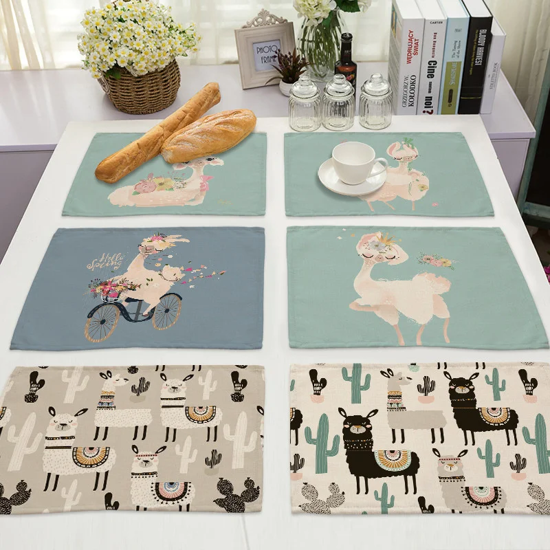 Хлопковые и льняные коврики для обеденного стола, с рисунком ламы, 42 х32 см, 1 шт., ML0009
