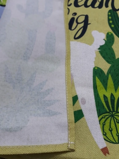Печать четкая, краски яркие, соответствуют фото, материал синтетика, не хлопок, есть непромокающая подложка