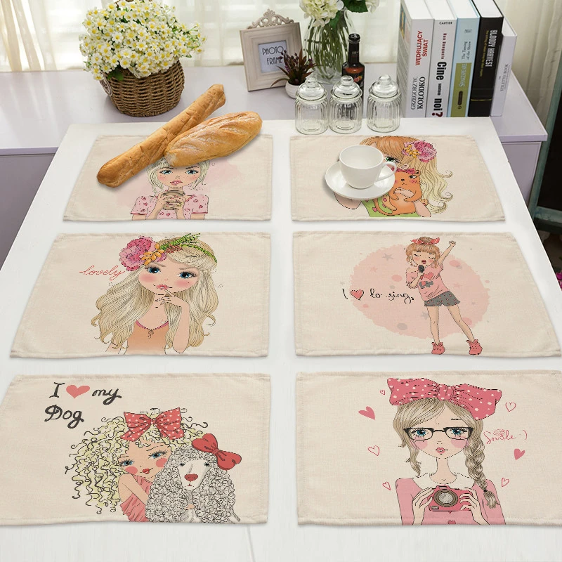 1 шт. Симпатичная хлопковая льняная подстилка для девочек, кухонная...