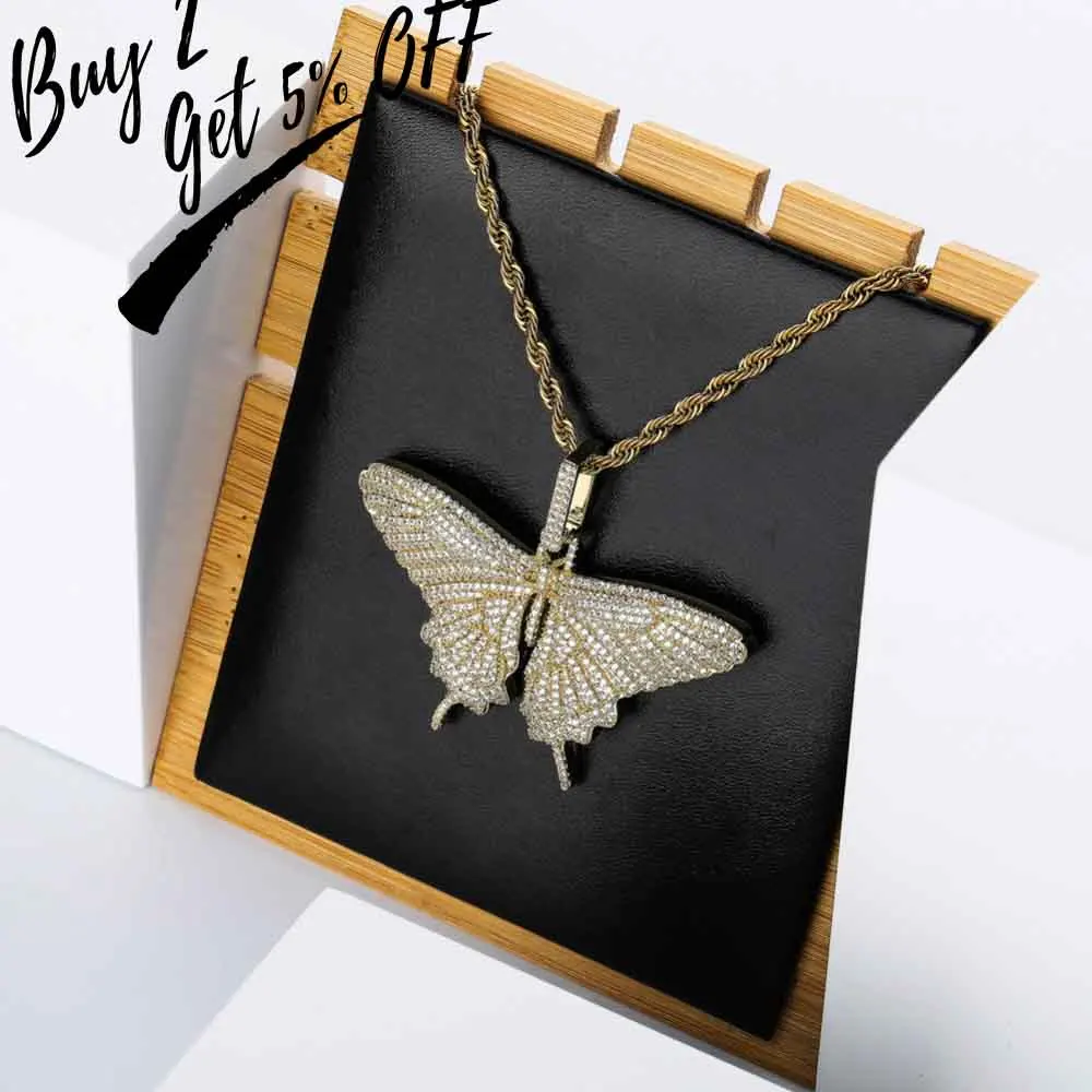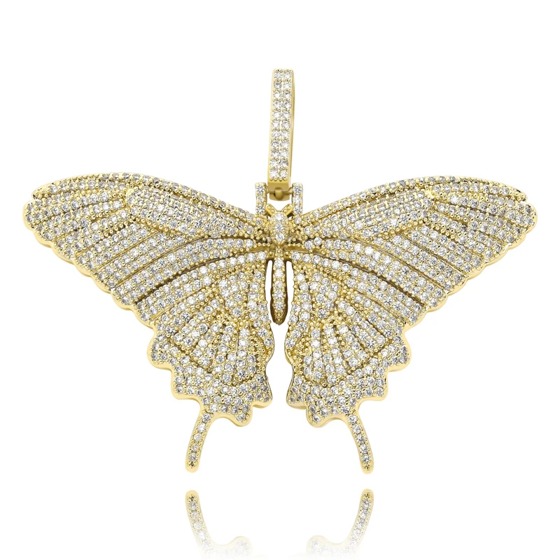 TOPGRILLZ новый сверкающий полный кубический циркон маленькие крылья бабочки кулон и ожерелье золотой серебряный цвет хип-хоп очаровательные ювелирные изделия