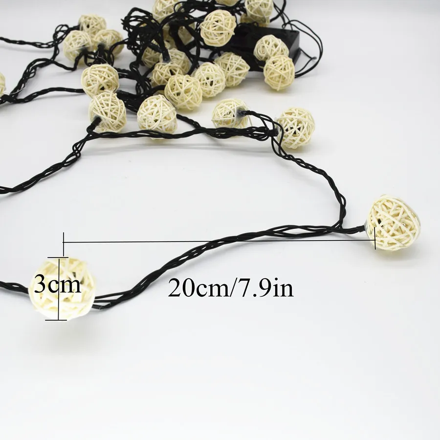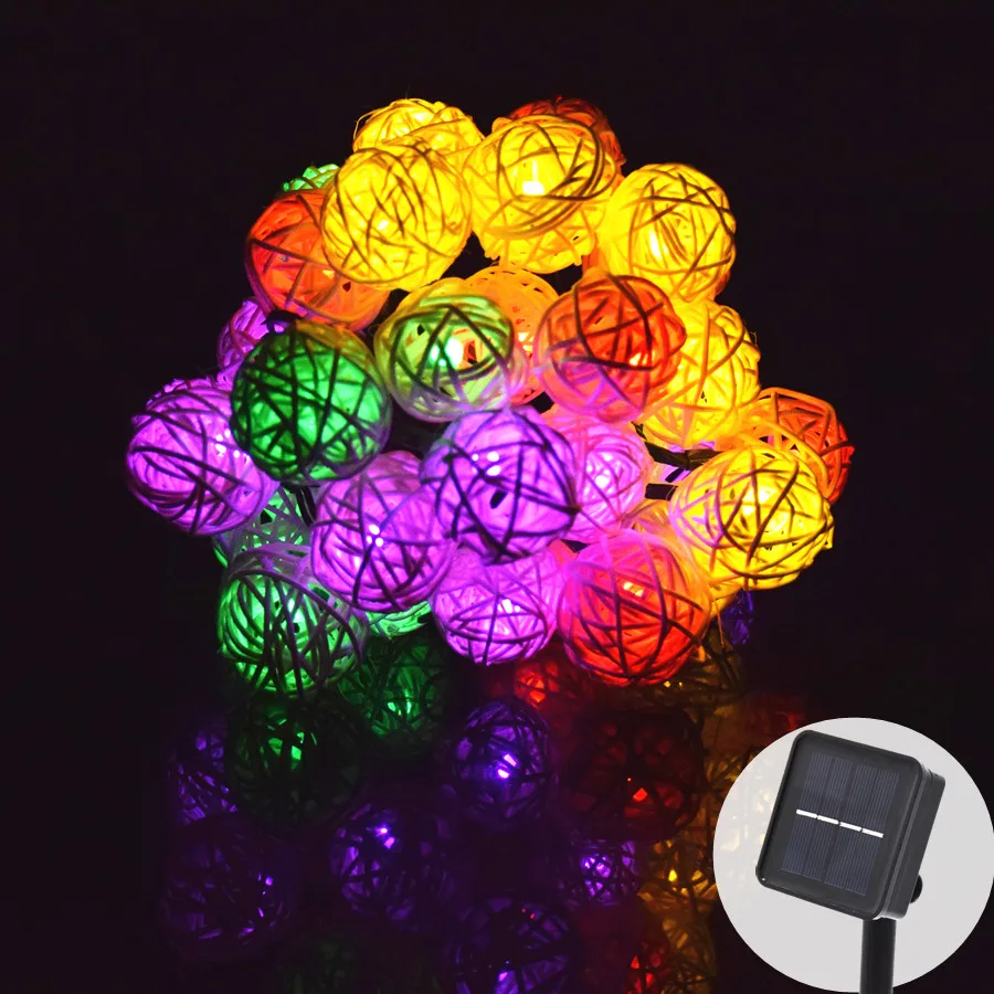 Солнечный светильник s 8 метров, ротанговый светильник, 20 светодиодов, праздничный сад, Рождественский Свадебный светильник, вечерние украшения, разные цвета