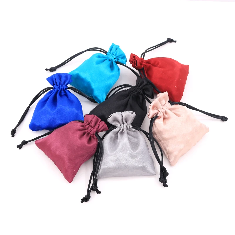 Новинка, 10 шт.лот, мягкие атласные сумки, разноцветные, 8x10 9x12 см, модные серьги, браслеты, подарочная упаковка, сумки, черные шнурки