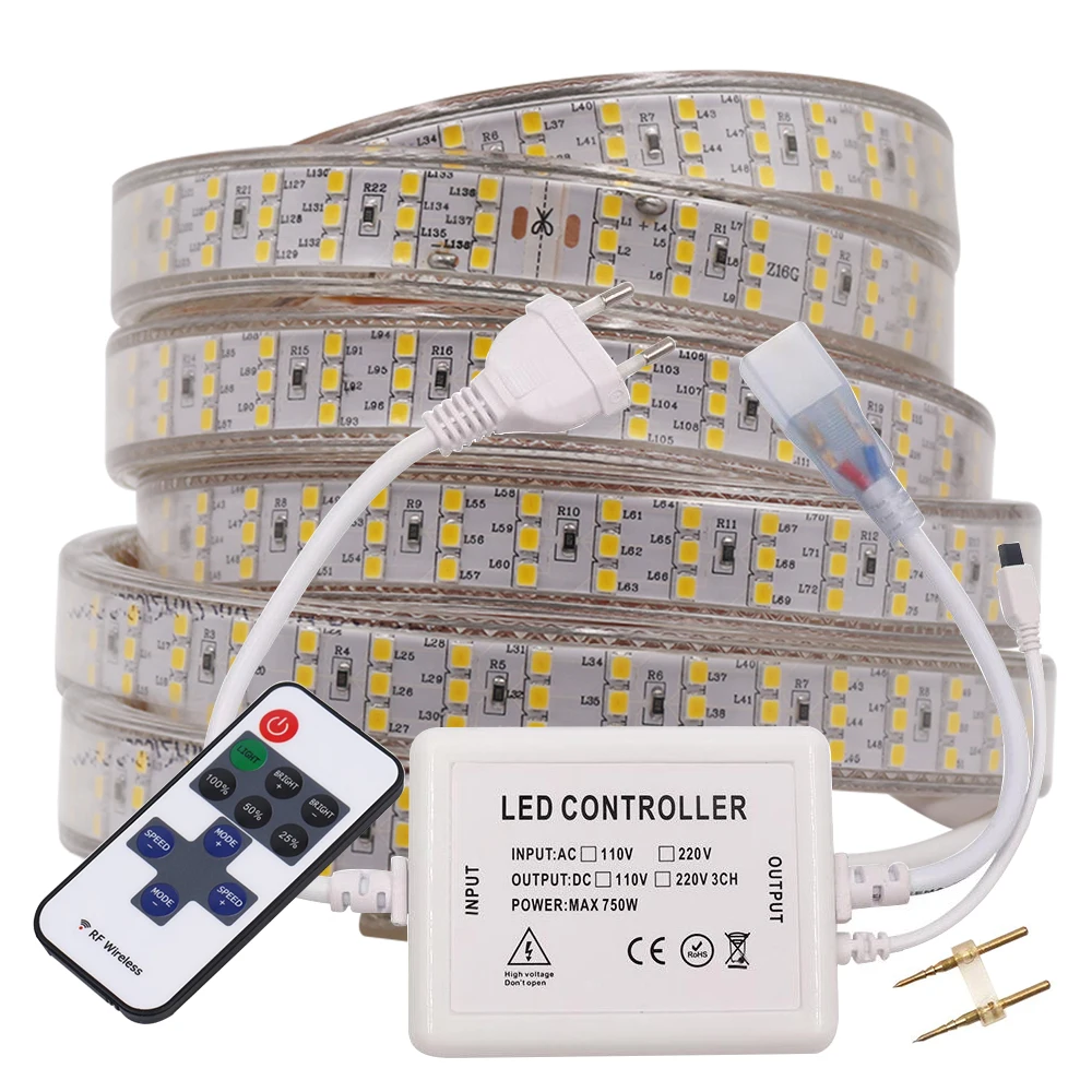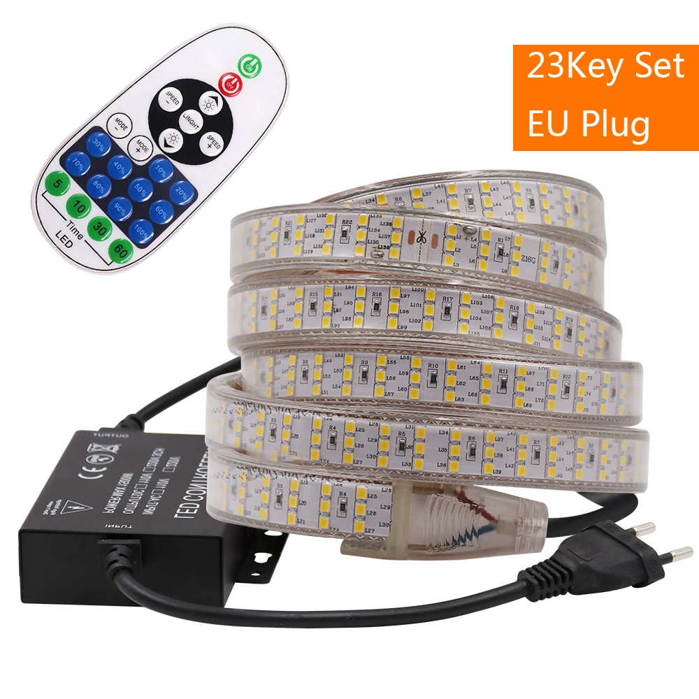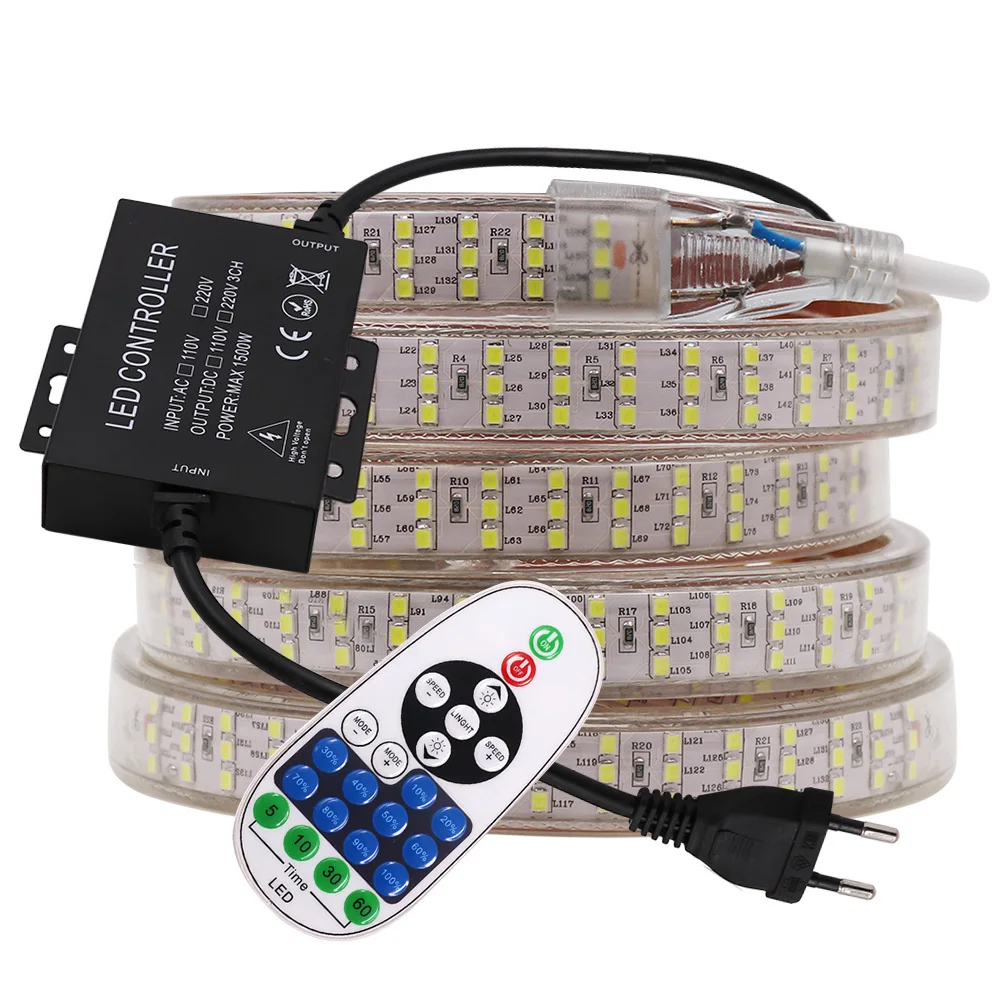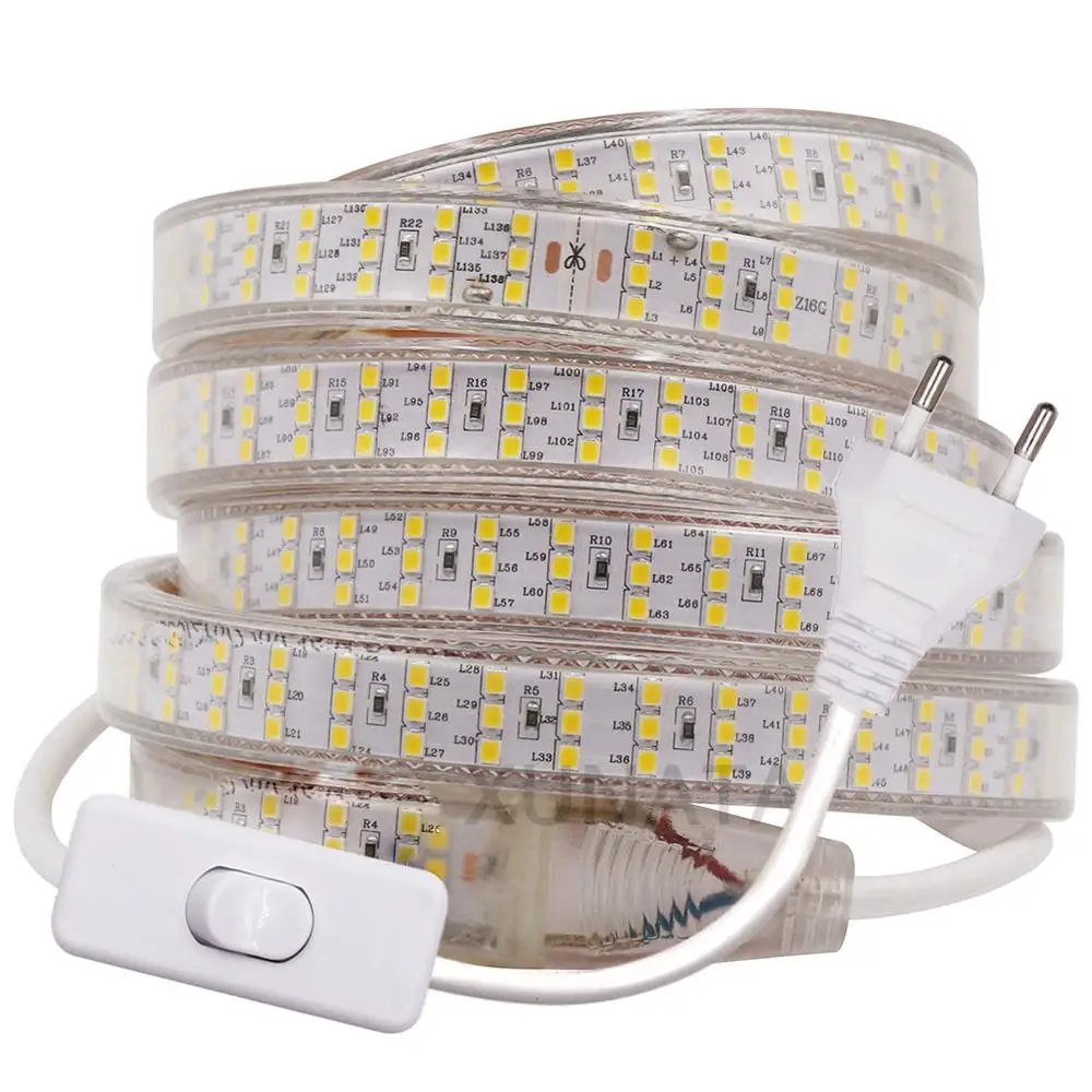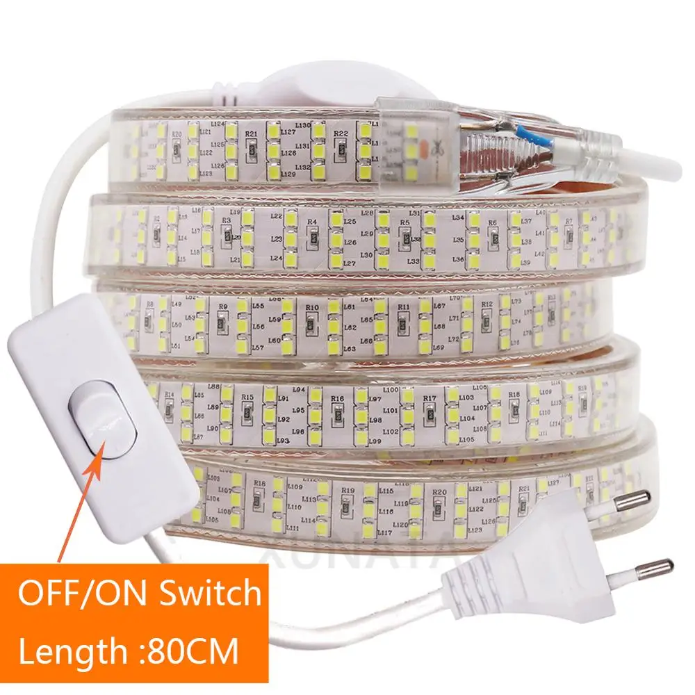 Светодиодная ленсветильник 220 В, 2835 светодиодовм, переключатель, диммируемая Светодиодная лента, Диодная Водонепроницаемая светодиодная лента, светодиодная лента для шкафа