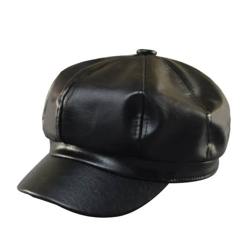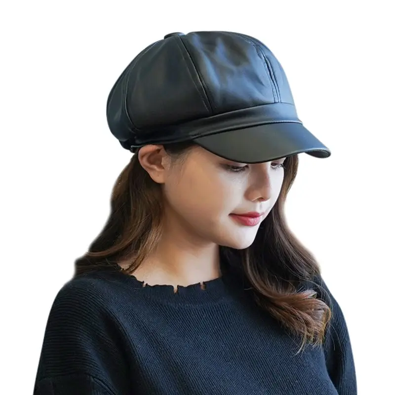 Новая Женская осенне-зимняя кожаная темно-синяя кепка береты шляпа для улицы путешествия дикая Ретро однотонная восьмиугольная шляпа