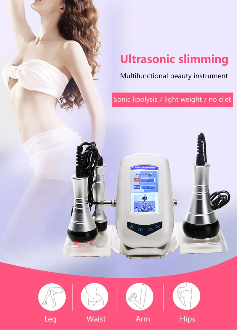 Ультразвуковая кавитация 40K для похудения тела, радиочастотная мультиполярная вакуумная машина для омоложения лица, потери веса для домашнего использования