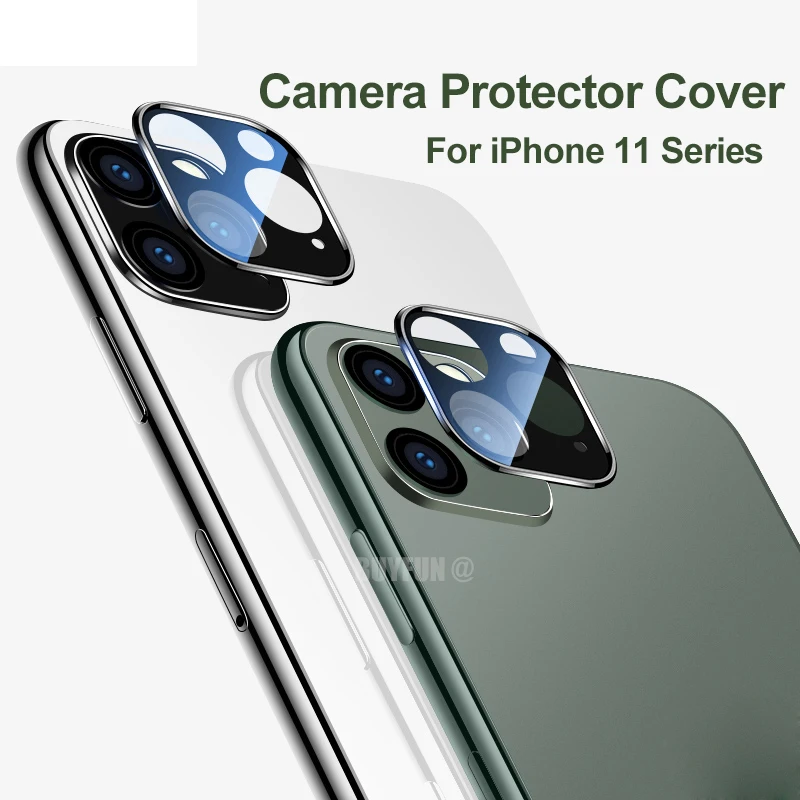 Чехол для объектива камеры с полным покрытием, защитное металлическое кольцо + закаленное стекло для iPhone 11 Pro XS Max XR X 12 Mini 13 Pro Max , защитный чехол для задней линзы