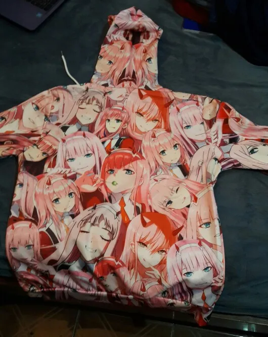 Толстовки DARLING In The FRANXX, хипстерские толстовки с аниме Zero Two, розовые топы с лицом для девочек, милые пуловеры Kawaai