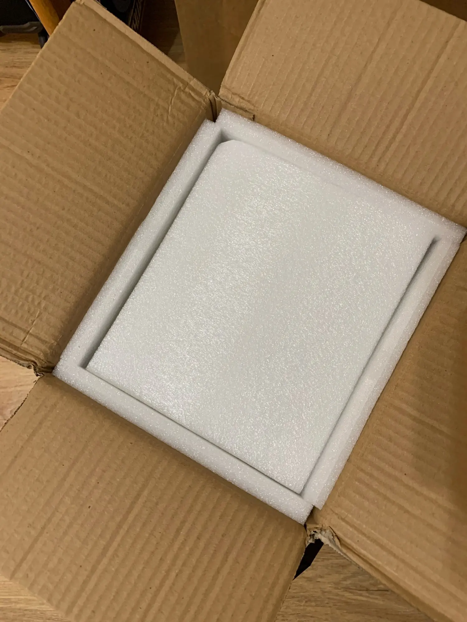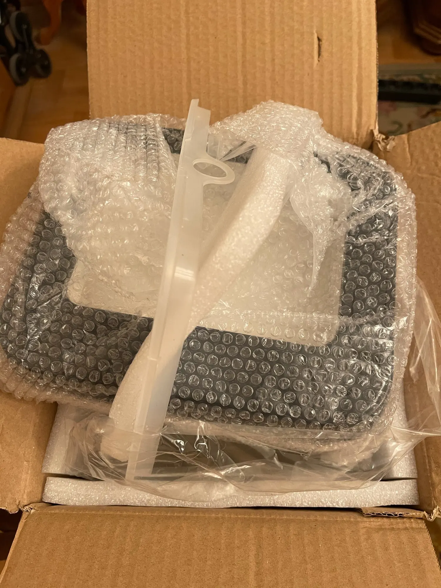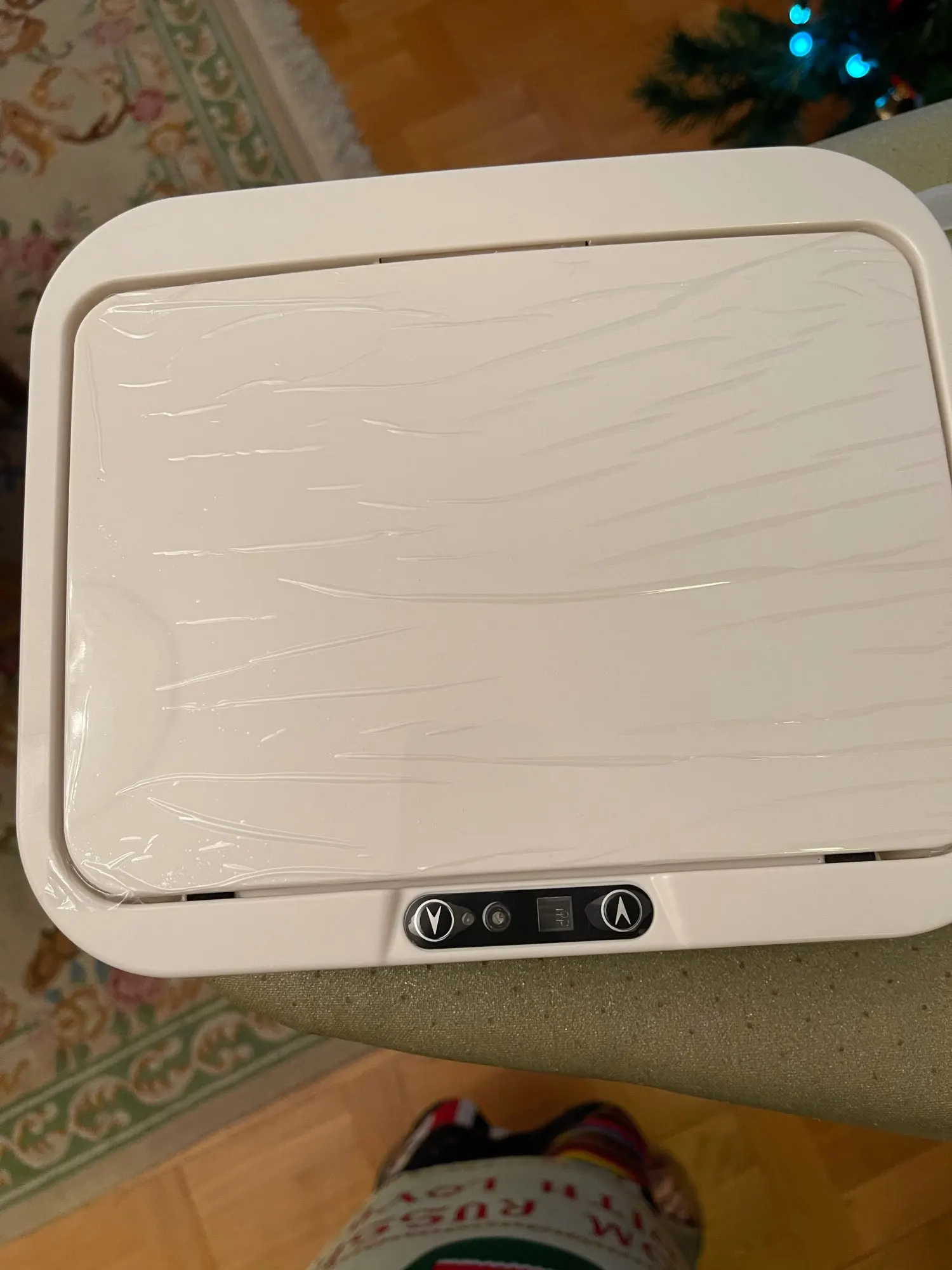 Очень аккуратно запаковано, коробка была слегка не целой, но само ведро без каких-то повреждений. Работает на 2 АА батарейках, хорошо что дома были для проверки :) Я ожидала даже чуть меньше по размеру при текущем литраже ведро, но оно идеально для ведра у рабочего места дома