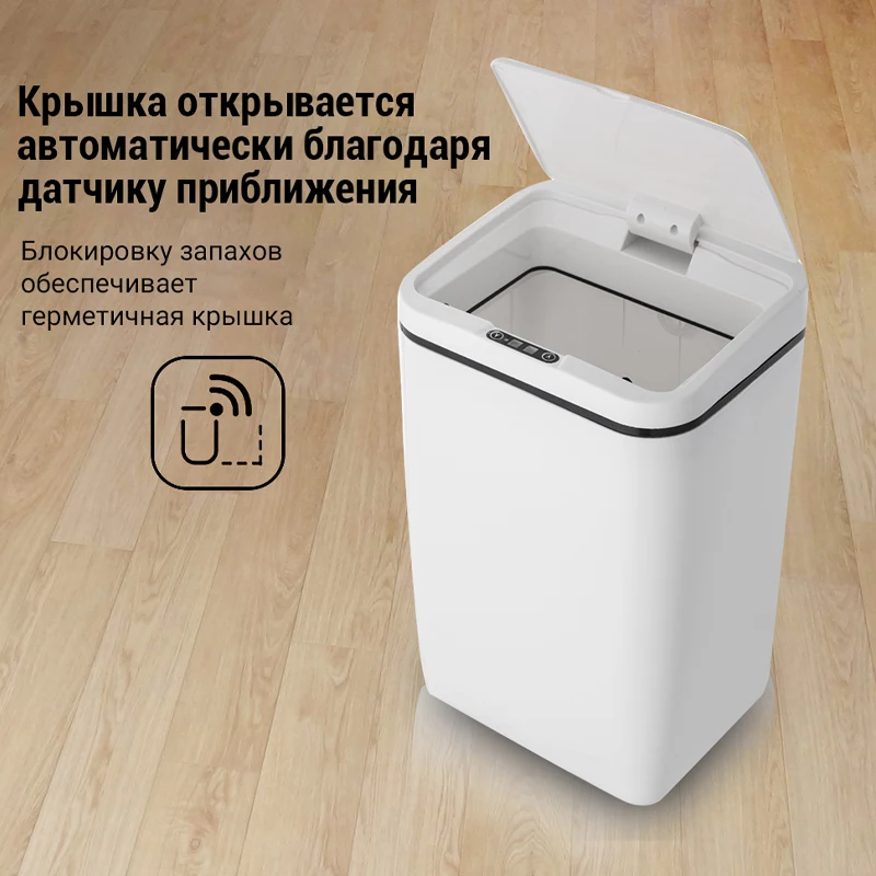 Отличное ведро. Только объем для 1-2 человека. Хотелось бы уменьшить время закрывания до минимума, крышка не закроется пока руки близко от от неё.