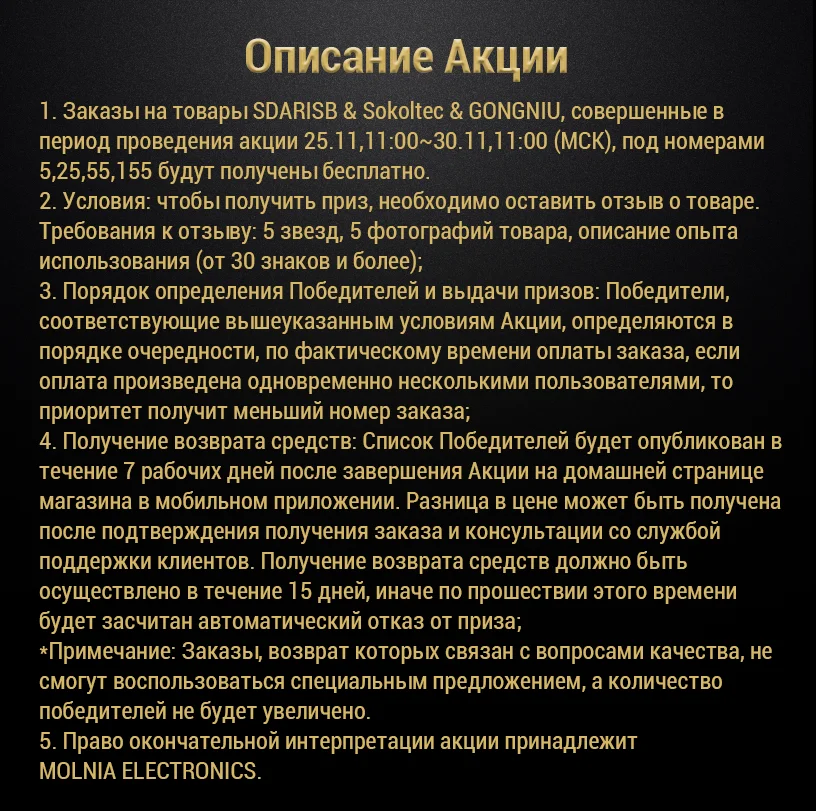 MOLNIA ELECTRONICS - Надежность 97.5%