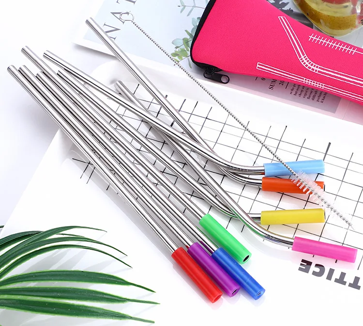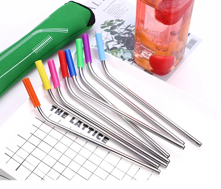 6 шт.компл. многоразовые трубочки из нержавеющей стали, прямые изогнутые трубочки для питья с силиконовыми наконечниками для горячих и холодных напитков, барные инструменты