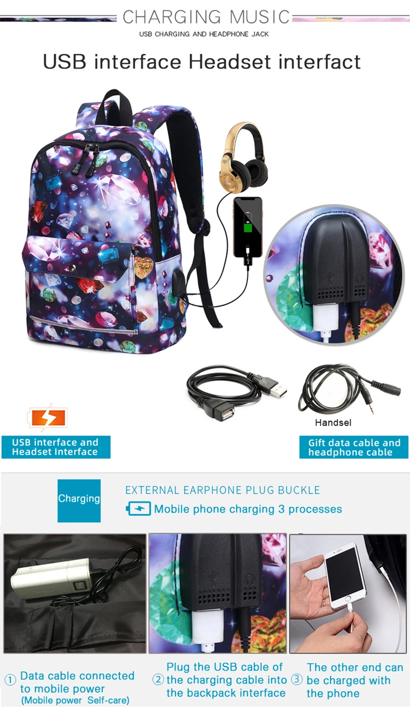 Рюкзак женский, школьный, с USB-портом для зарядки
