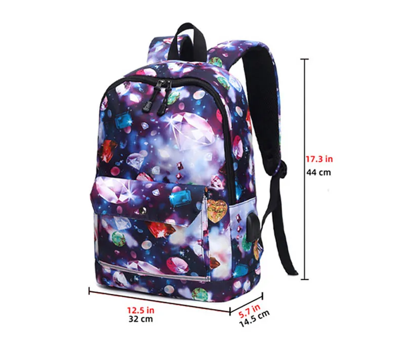 Размер рюкзака (приблизительно): длина 32 см; Ширина 14,5 см; Высота 44 см Материал: водонепроницаемый полиэстер Вес: 0,5 кг Применение: рюкзак для девочек 1. Примечания: возможны отклонения в 1-3 см из-за ручного измерения. 2. Все измерения в см, обратите внимание: 1 см = 0,3937 дюйма, 1 дюйм = 2,540 см