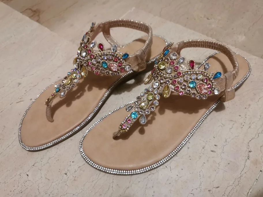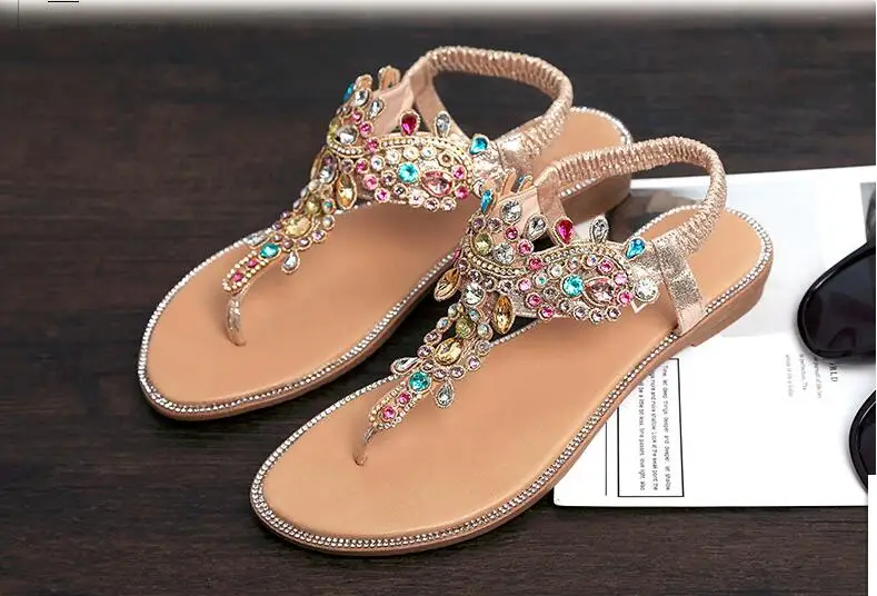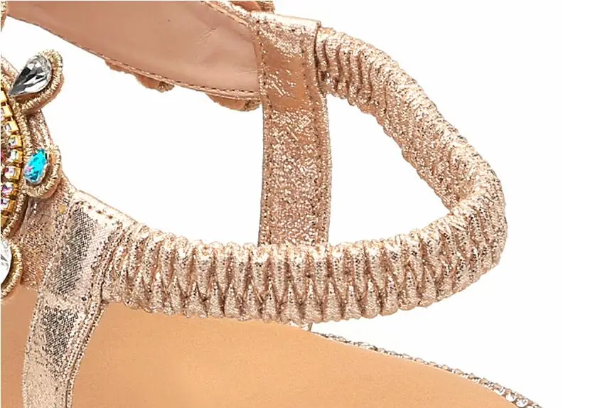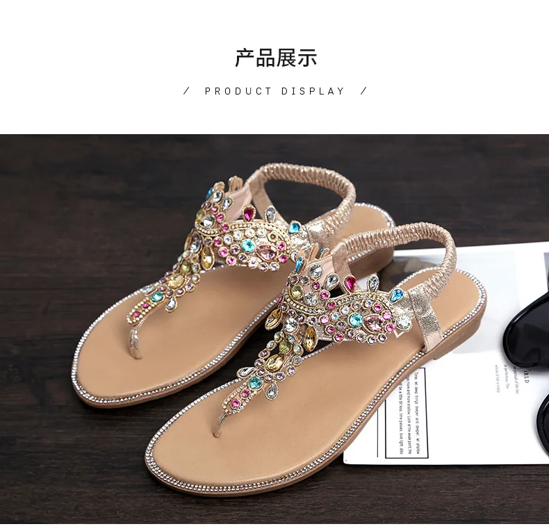 Женские босоножки; Женская обувь; Стразы с цепочками; Гладиаторские плоские сандалии со стразами; Chaussure размера плюс; 36-41; Q068