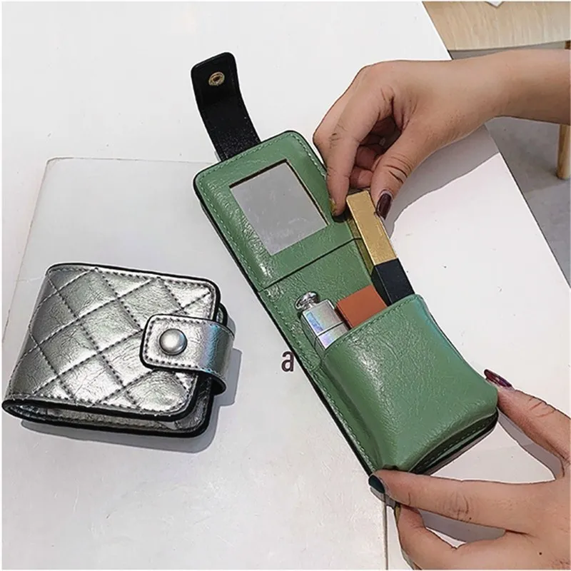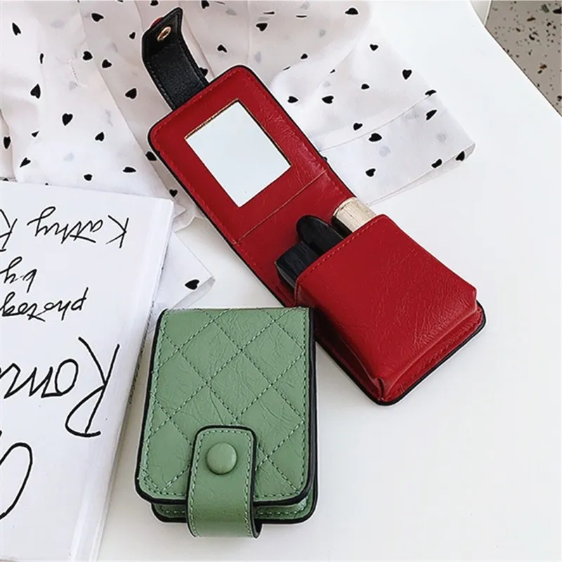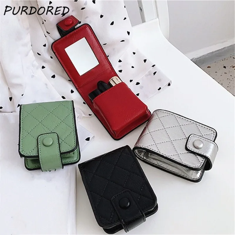 PURDORED 1 шт. винтажная женская сумка для губной помады, Кожаная Мини косметичка для губной помады, органайзер с зеркалом, портативная косметичка